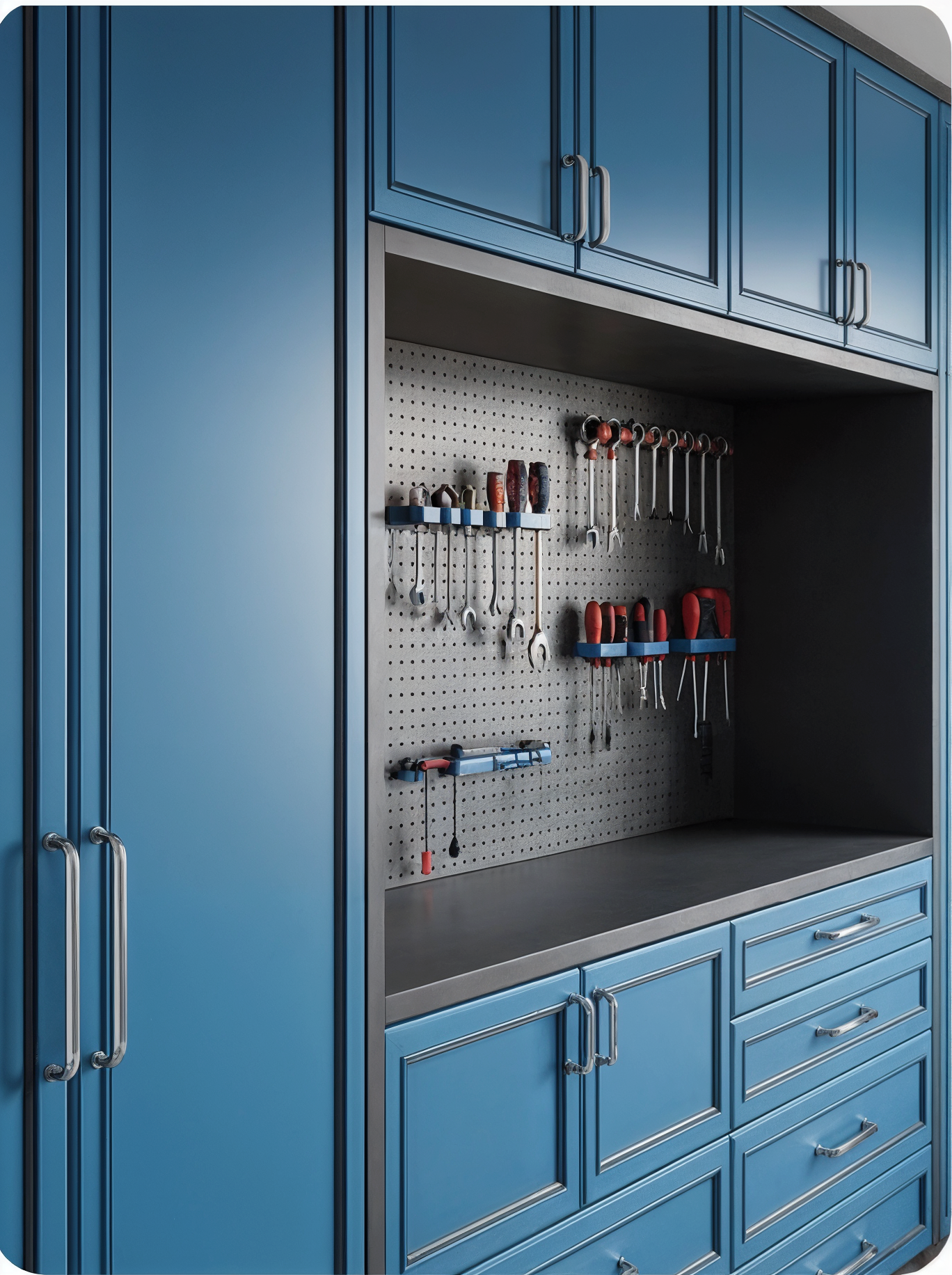Discover true efficiency and reclaim your garage. Designed to keep your tools, equipment, and supplies perfectly organized and easily accessible, giving you complete control over your space.