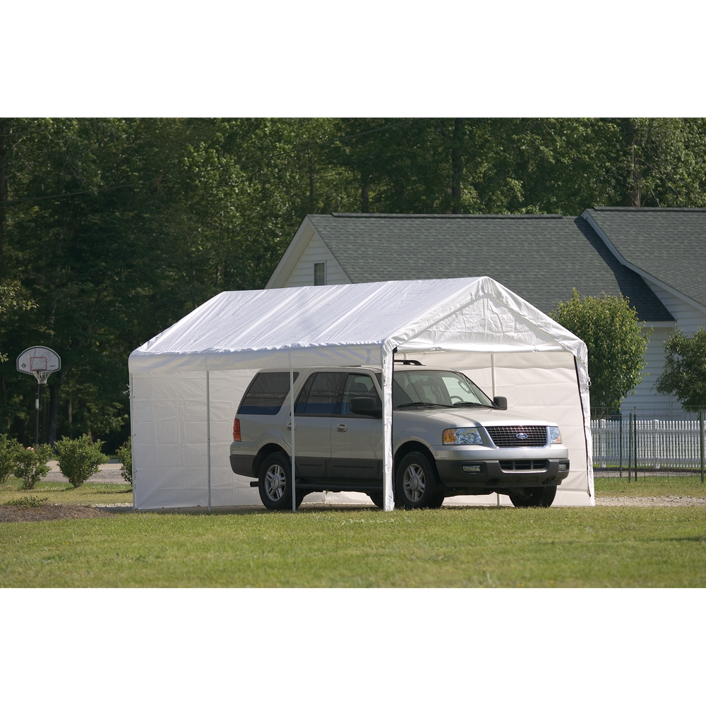 The ShelterLogic SuperMax 2-in-1 Canopy Pack is great for any seasonal shade occasion including vehicle or boat shade, backyard, events, camping, commercial job sites, picnic areas, lawn and garden equipment storage, pool or patio cover and much more. 10 x 20 ft. canopy and sidewall enclosure kit.
