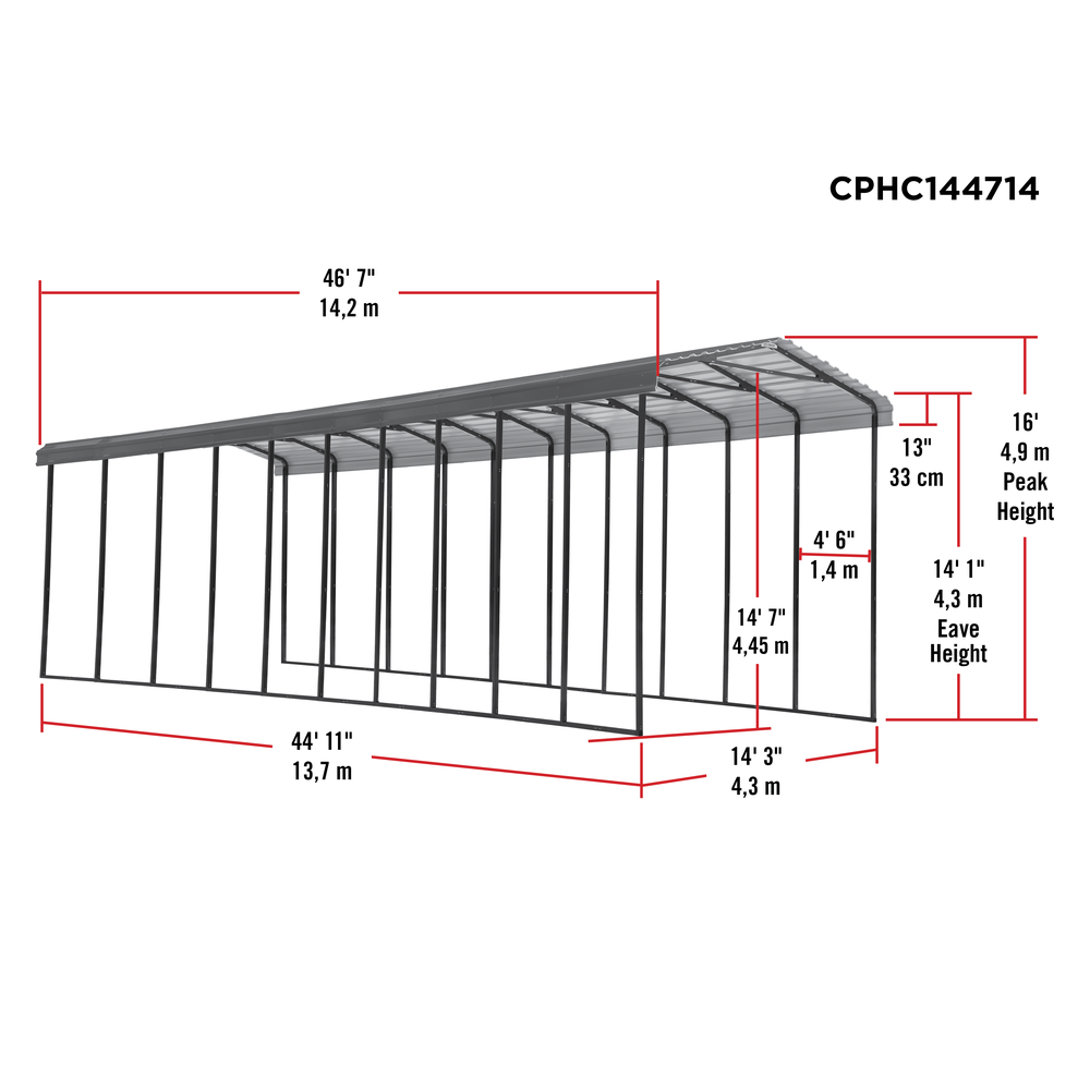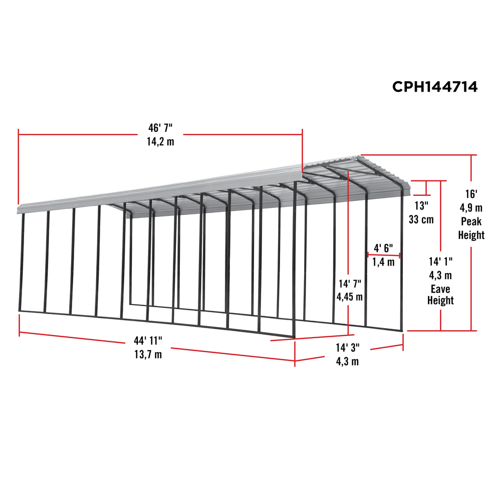 Arrow 14 x 47 x 14 Ft. Carport