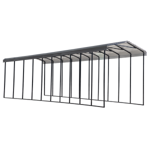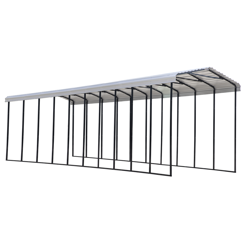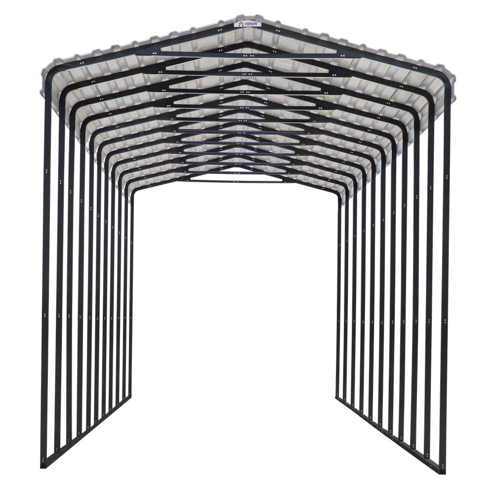 The all-steel RV Carport from Arrow is a convenient, all-weather shade and shelter solution that's versatile and practical. The Arrow Steel RV Carport with Metal Cover is equipped to protect a variety of vehicles including your RV, Motorhome, Camper, Truck, Tractor or 5th Wheel camper. Each Arrow RV Carport is made strong with a wind and snow load rating, meaning they are designed to take on tough weather and snow storms. The 14 foot high Metal cover is made from galvanized steel to offer your vehicle years of protection from the weather and harmful UV rays. The steel frame is durable and is made with a powder coating finish to protect the carport for extended corrosion protection. Easy to install, the Carport comes with slip-fit connections with pilot holes and self-taping screws making this unit easy to build straight out of the box.