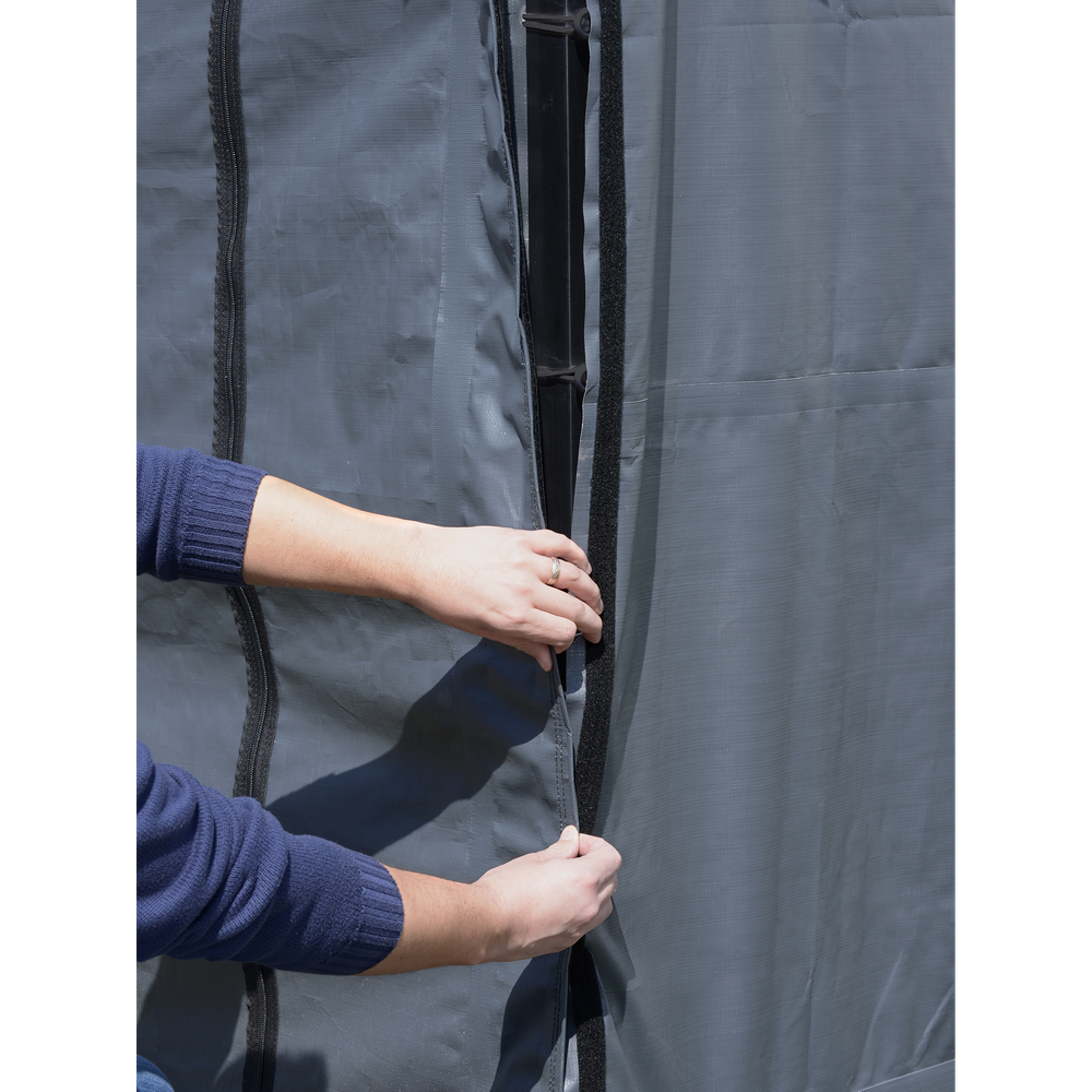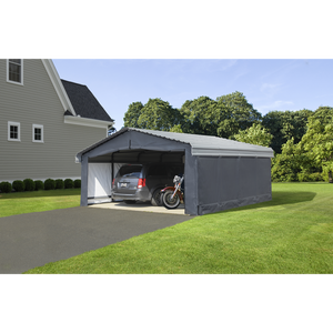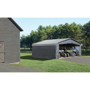 Get added protection for your vehicle against the elements with the 20 x 20 ft Arrow Carport enclosure kit. Made from a sturdy rip-stop polyethylene fabric that has been UV treated, this fabric enclosure is water resistant and will help keep your vehicle or items protected against the elements.
