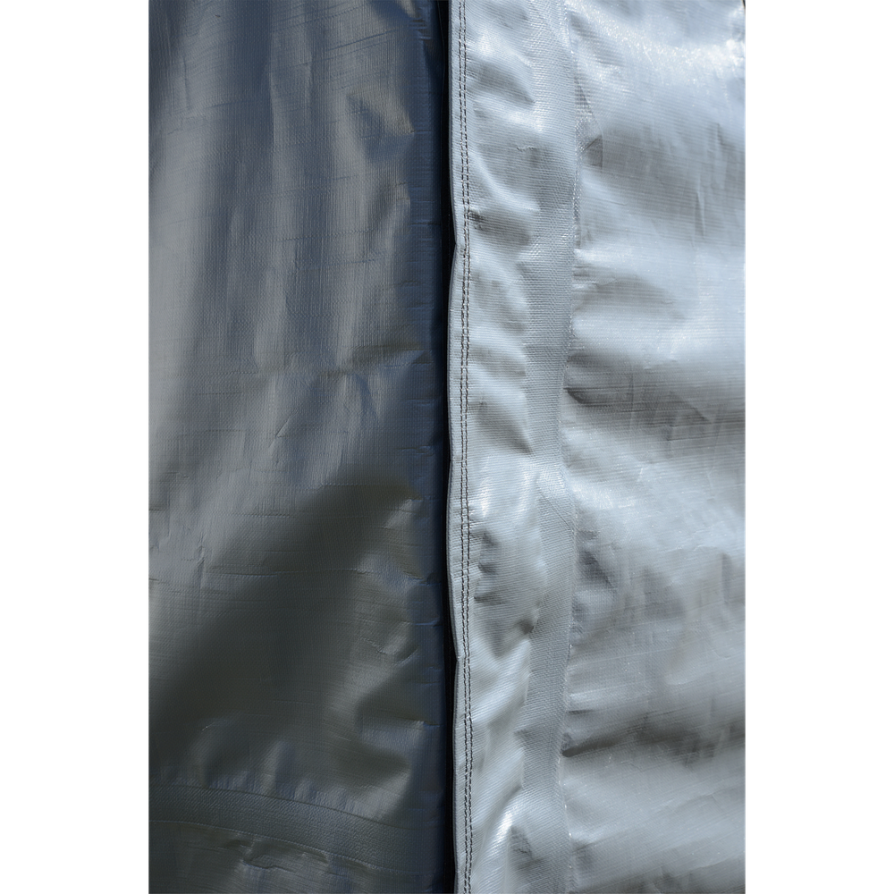 Fabric enclosure is made from a tough, rip-stop fabric that's made from a triple layer woven polyethylene material.