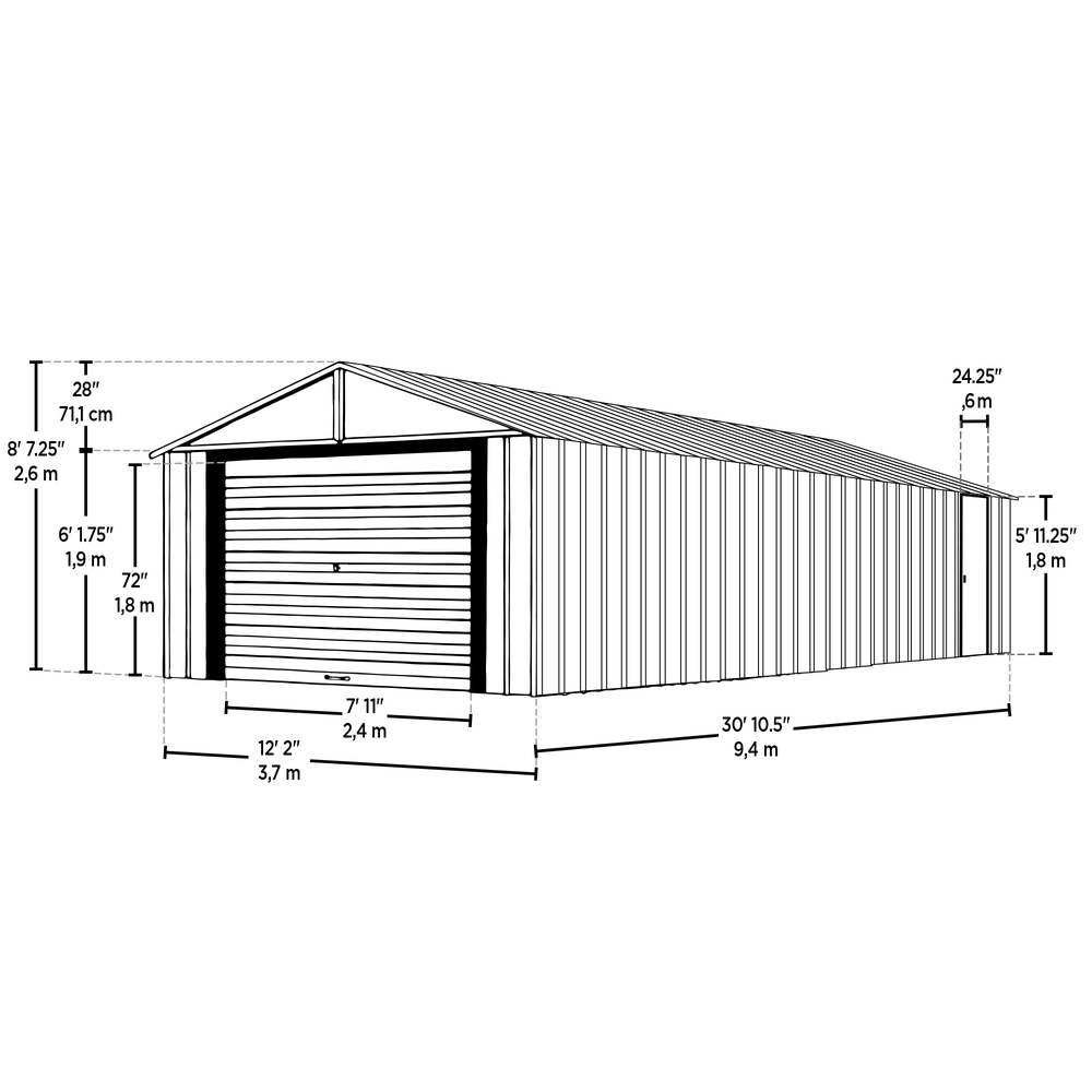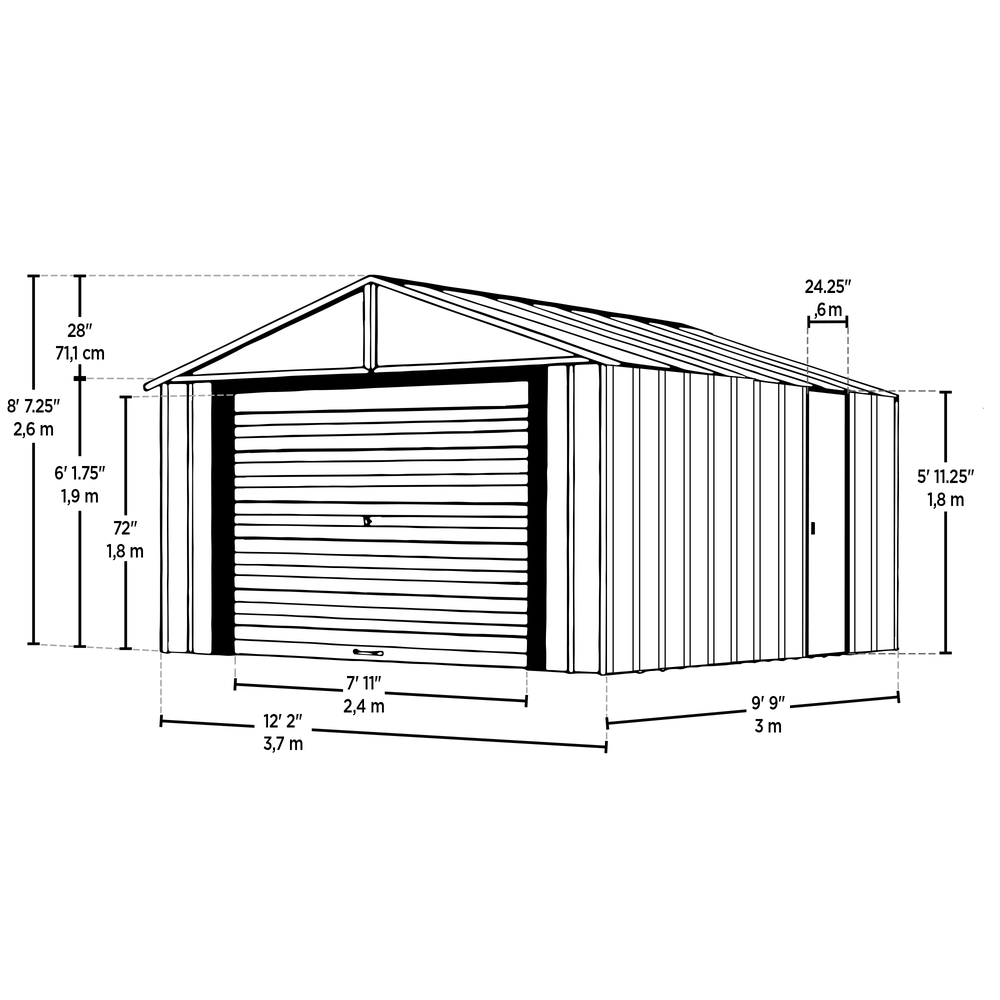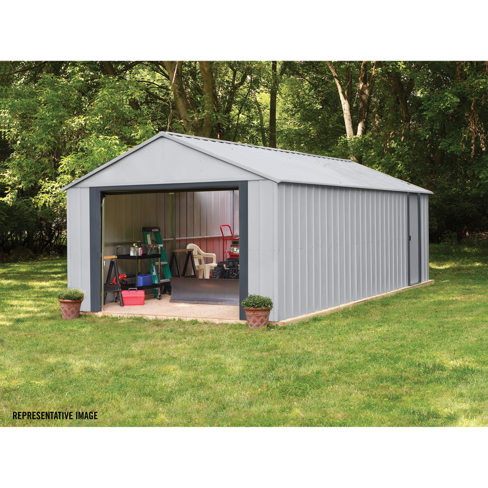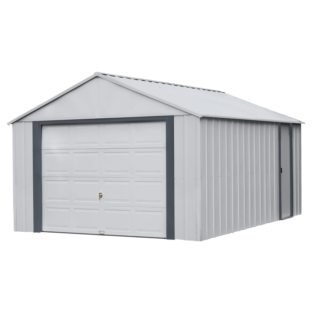 Sliding side door allows you to walk into the garage easily while an extra-wide roll-up door accommodates bigger items