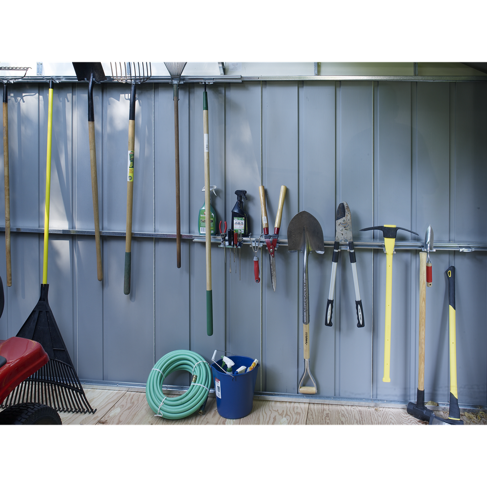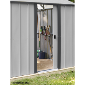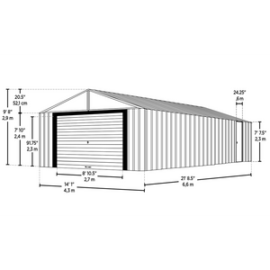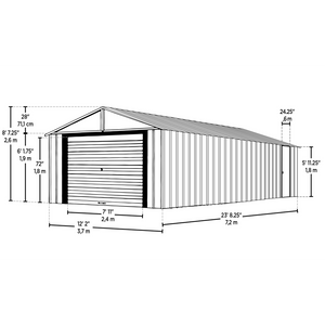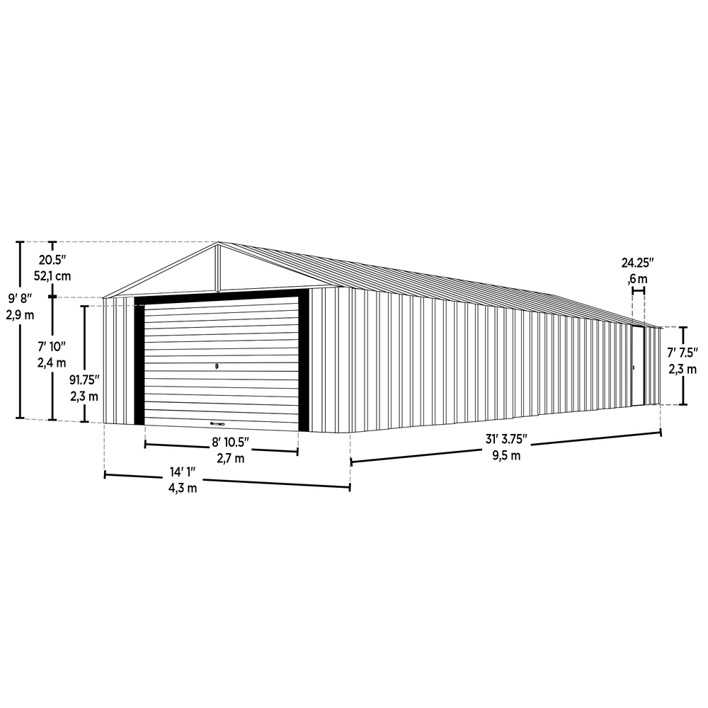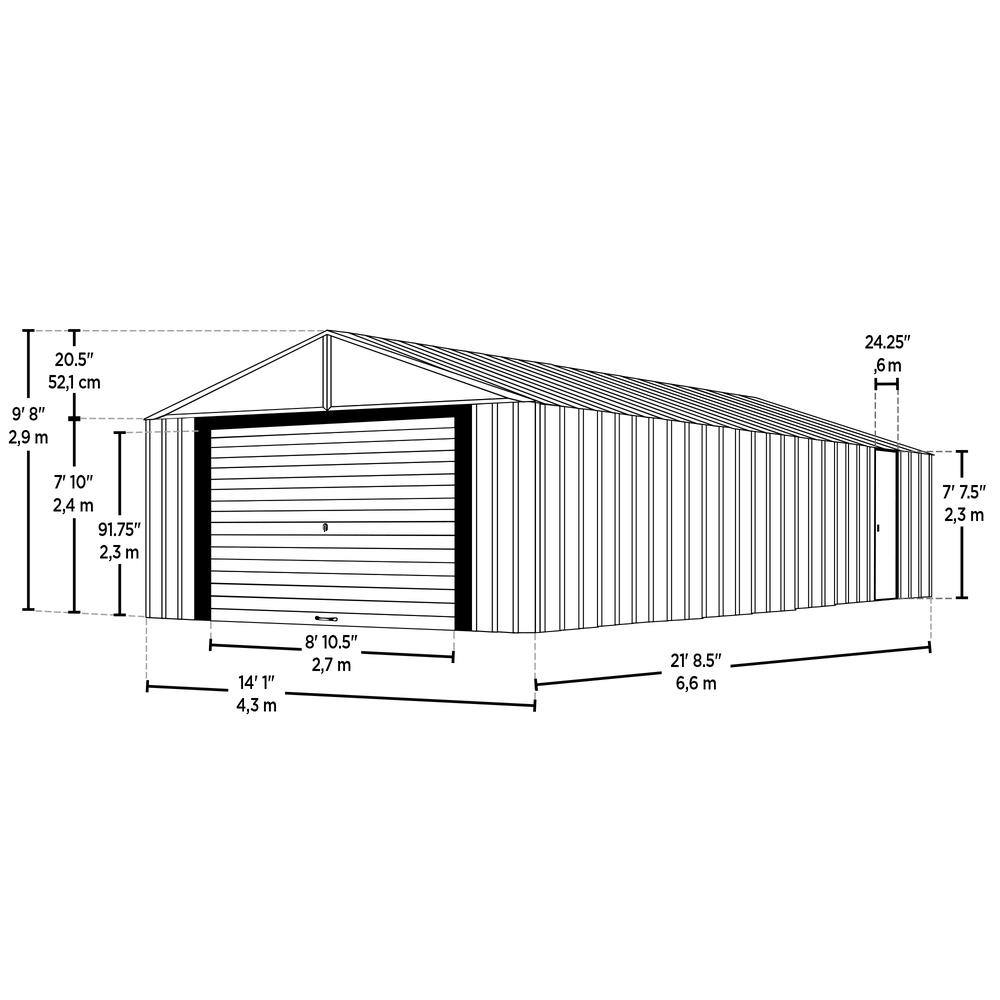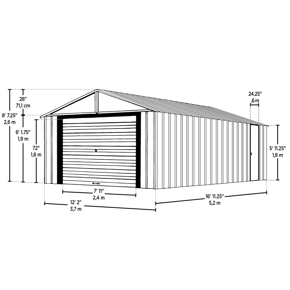 Sliding side door allows you to walk into the garage easily while an extra-wide roll-up door accommodates bigger items