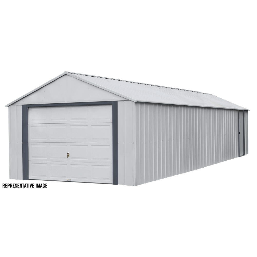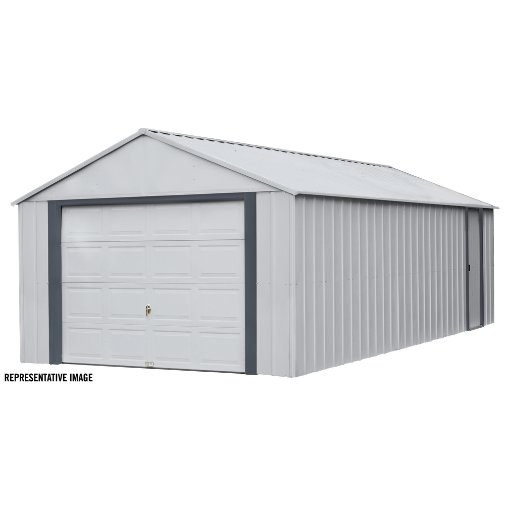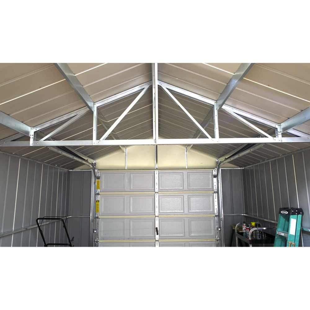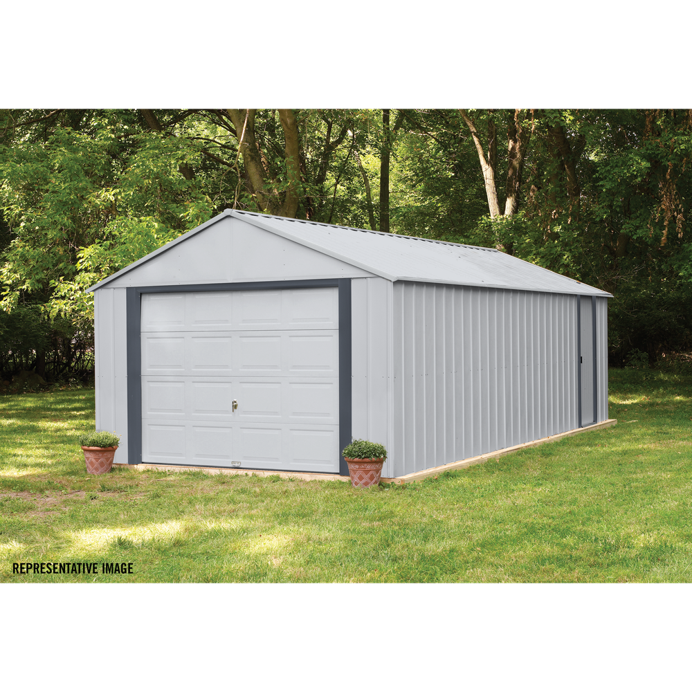 Add functional storage space and classic good looks to your property with the Murryhill Garage. This prefab building is thoughtfully designed to hold virtually anything you want to store. In addition to storage, the Murryhill Garage makes a spacious and affordable workshop for all kinds of projects. It provides plenty of room for tool benches, woodworking tools, automotive equipment, and more. Its detached design also means you can work in the garage at any time day or night without disturbing family members inside your home with noises, odors, or fumes. The Murryhill Garage is made from strong galvanized steel. This construction delivers reliable durability and strength. The garage also features reinforced steel trusses in the roof for added strength and structural resilience. All of these well-designed features ensure the garage will maintain its beauty and integrity for years to come. This garage also includes a 12-year limited warranty so you can be sure of the building's quality and enjoy added peace of mind.