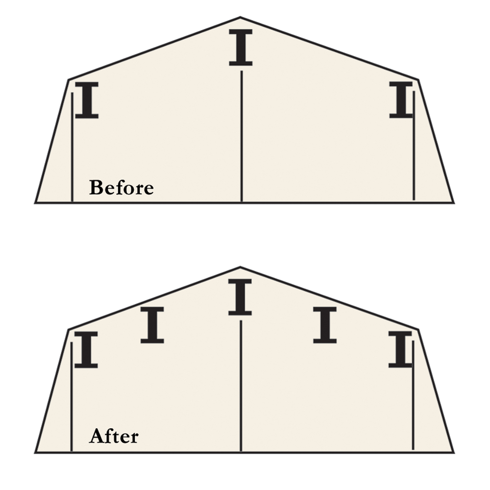 Additional roof beams and gable braces designed for added protection against snow accumulation and improved snow load.