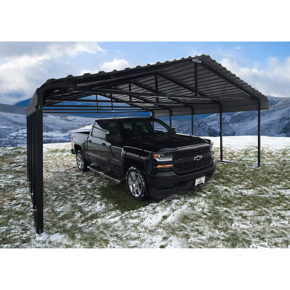 Built strong, wind and snow rated, and backed by a 10-year limited warranty is the Arrow Carport. This galvanized steel carport from Arrow Storage Products features a powder coated steel frame for corrosion and rust resistance. The tough made galvanized steel roof is made strong. Perfect for use as a carport, shelter, shade and storage for boats, vehicles, tractors and even as an outdoor picnic area.