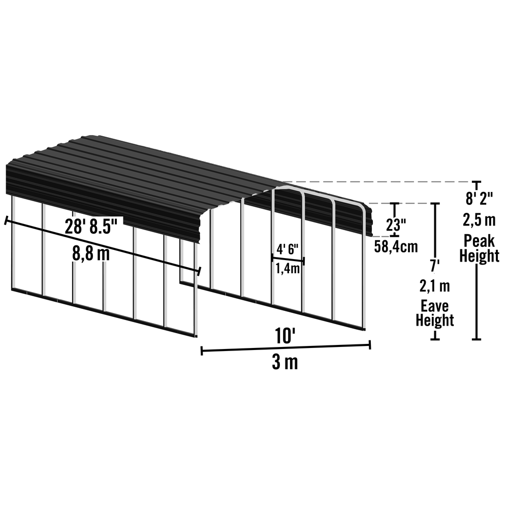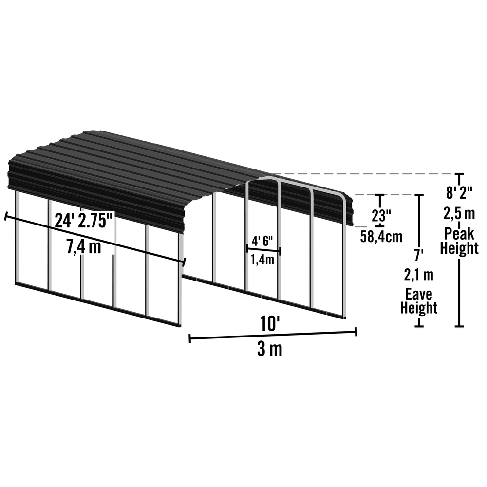Arrow Steel Carport Galvanized In Black