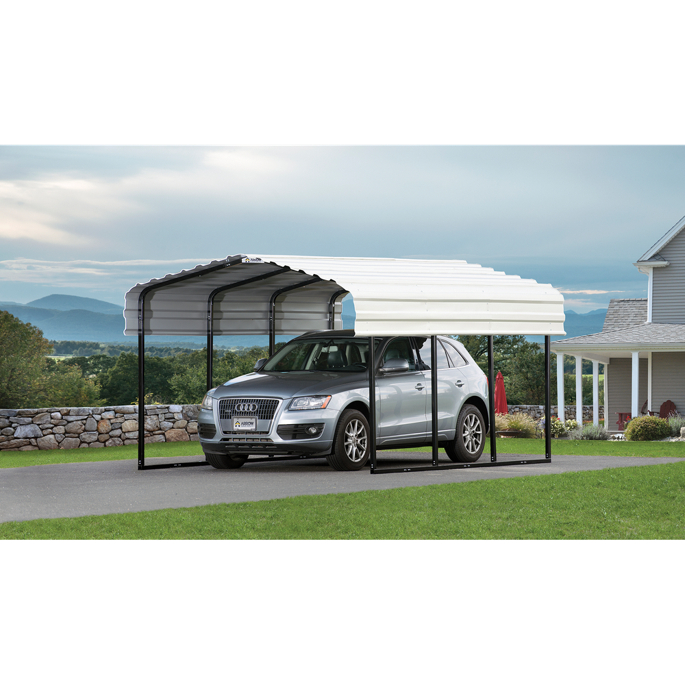 Meet the Steel Carport from Arrow Sheds: the perfect, more compact all-steel carport fit for smaller vehicles, sedans, outdoor equipment and more. Get reliable shade and shelter with the Arrow Carport - featuring a heavy-duty galvanized steel roof and a all-steel, premium powder coated tube frame. Snow and wind rated, the Arrow Carport is the ultimate shade, shelter and -use carport that's perfect for vehicles, boats, tractors, outdoor picnic areas and much more.