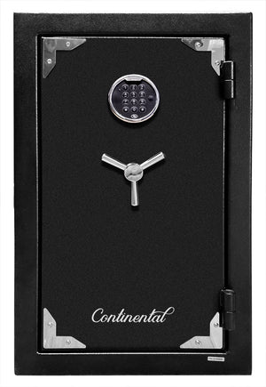 Introducing the Continental Home and Gun Safe Series; designed with more style without sacrificing our high security and high fire rating. The exterior beveled edge and chrome trim adds that extra special touch. Fire rated for 60 minutes with an intumescent fire seal that is heat activated and expands 7 times its original size. This seals the door to keep out fire and smoke. The Continental Series is equipped with high security 1.25 inch chrome steel bolts that are 25% thicker than the industry standard. Each safe in this series (this includes the C-6 and C-8 models too) has a full wrap of bolts that include the top, bottom, hinge, and opening side of the gun safe to ensure pry resistance. You’ll have your choice of Sargent & Greenleaf Type 1 electronic lock or Group II combination dial lock. The interior lock pack is protected by our drill and ballistic resistant hard plate that has to be melted in order to penetrate the lock pack. Also includes upgraded Deluxe interior with charcoal grey liner for all models. For the Gun Safes, there’s a Pocket door organizer made from heavy canvas for longer durability and Adjustable and removable interior shelves and gun racks are also included.