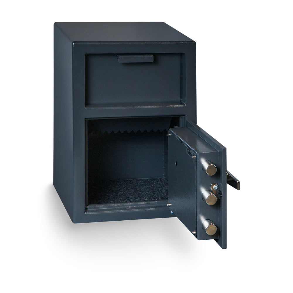 Put a dead stop to theft or shrinkage – internal or external. Hollon Depository Safes allow companies to regain control of their cash and are the absolute best choice for a heavy duty commercial environment. Constructed with solid steel plates welded with continuous welds for all parts of the safe. B Rated and designed for use with armored car services, restaurants, chain stores, convenience stores and government applications.