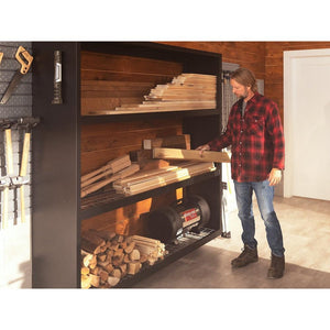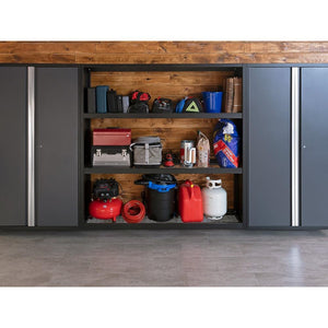 NewAge Products' Bold 3.0 Series wall mounted storage racks provide heavy duty, high capacity shelving that looks fantastic and holds up to 1,300 lbs of garage storage. Designed with NewAge's expertise in steel cabinetry the shelves themselves are height-adjustable, with heavy gauge wire racks to place your items on and feature a 0.75" safety lip to prevent items slipping off.