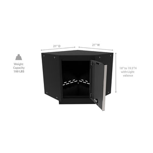 Dimensions: 21 in. W x 21 in. D x 18 in. H (included light valance extends cabinet to 19.5 in. H)