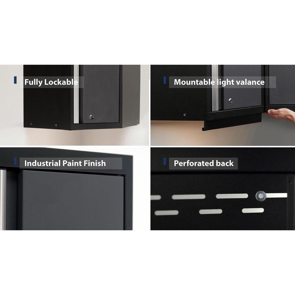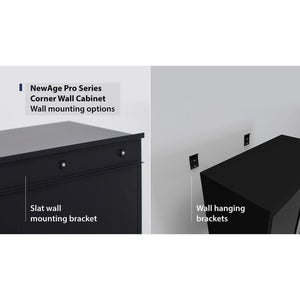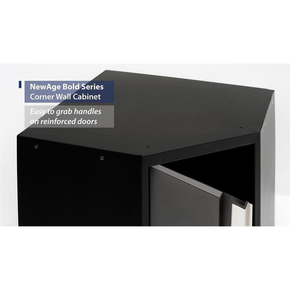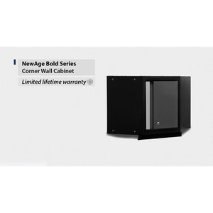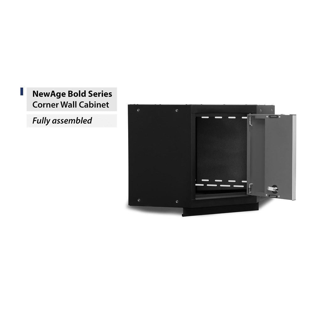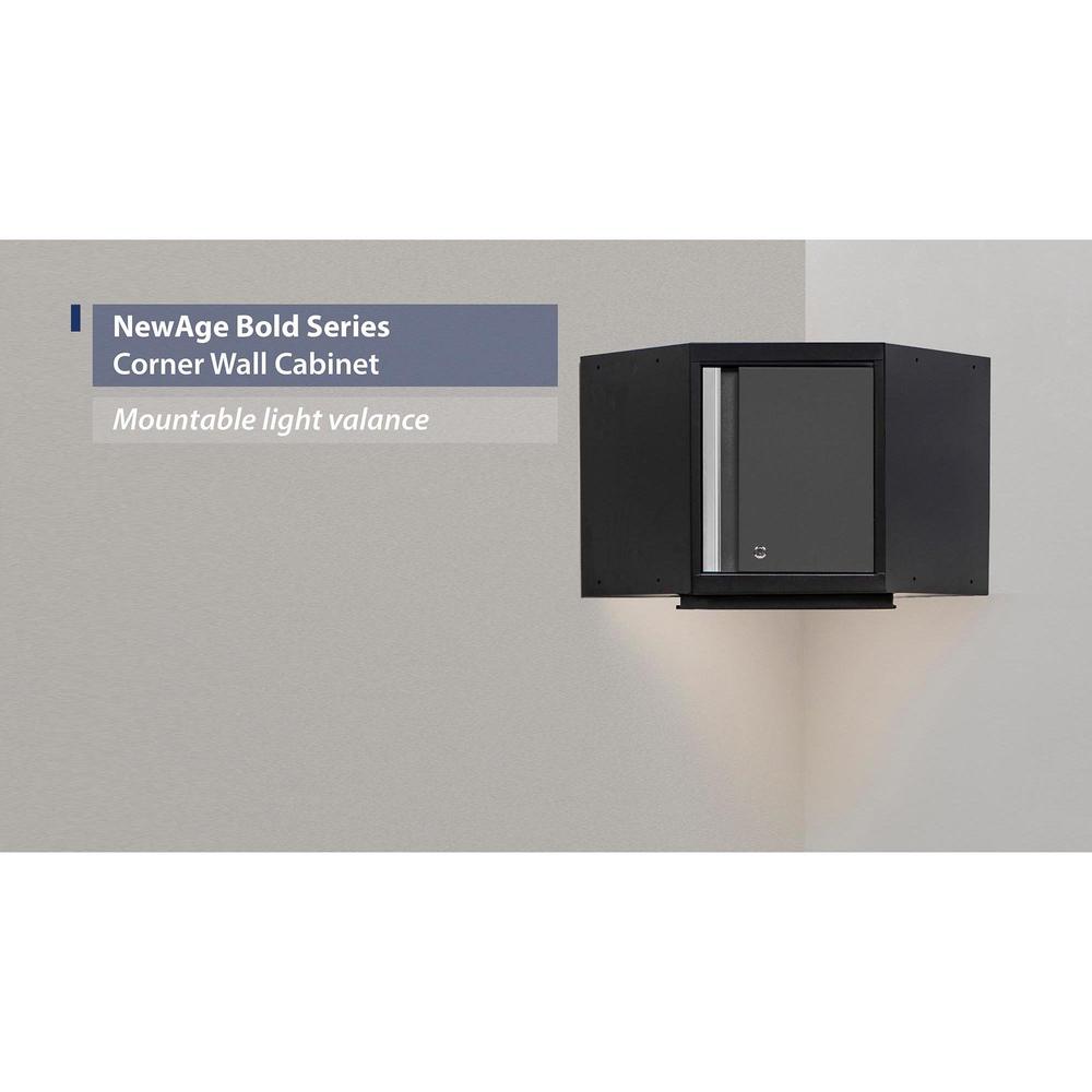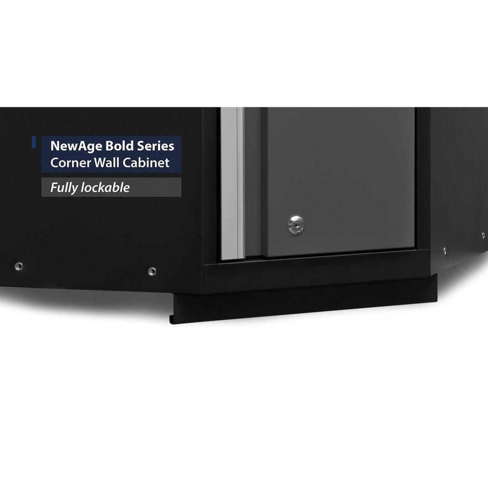 NewAge Products' Bold 3.0 Series corner wall cabinets enable you to put the corner space of your garage to good use. They will fix to adjoining NewAge wall cabinets where a corner cabinet set is being created from two standard sets. They arrive ready-assembled from 24-Gauge steel and feature lockable doors with easy-grab handles and an underside light valance to conceal LED lights (lights available separately). The Bold Series wall cabinets do not include a shelf to maximize usable interior space. Spacious, secure and stylish; rediscover your ground-level garage space with these easily installed, great-looking wall cabinets.