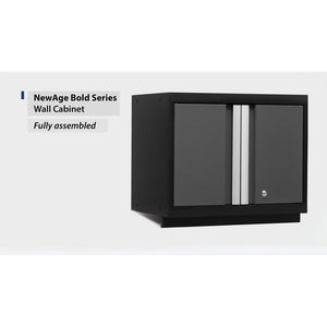 NewAge Products' 24" wide Bold 3.0 Series wall cabinets arrive ready-assembled from 24-Gauge steel and feature lockable doors with easy-grab handles and an underside light valance to conceal LED lights (lights available separately). The Bold Series wall cabinets do not include a shelf to maximize usable interior space. Spacious, secure and stylish; rediscover your ground-level garage space with these easily installed, premium-looking wall cabinets.
