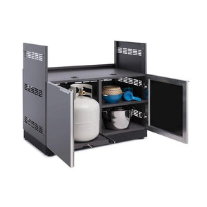 This stylish Gas Grill Cabinet from NewAge is the perfect centrepiece for your outdoor kitchen. Drop in a compatible 34.5 in. to 40 in. gas grill and enjoy the smart design such as a pull-out, locking propane tank tray and ample shelf space for storing cook tools, spices and gloves. The solid construction gives plenty of support for heavy-duty grills while the soft-close door hinges give easy access to propane and supplies. Multiple gas line access ports are pre-punched for ease of setup, and the height-adjustable levelers ensure your cabinet and grill is perfectly level. NB: NewAge Products does not guarantee the compatibility of third party insert grills. Check your grill product manual for compatibility and safety requirements.