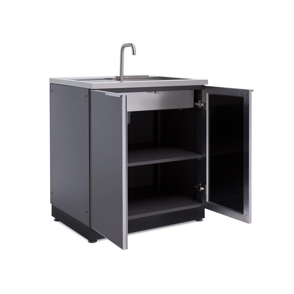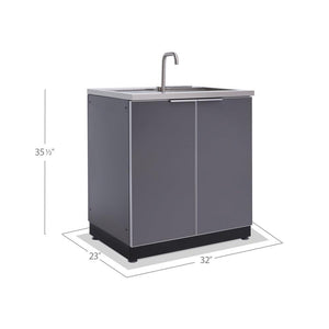 Newage Products Outdoor Kitchen Cabinets Aluminum Slate Grey Glass 32" Sink Cabinet
