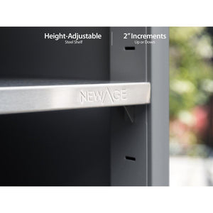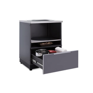 The Outdoor Kitchen Kamado Cabinet easily supports most ceramic BBQs, with plenty of additional storage space and unique features to elevate your culinary techniques. This cabinet can accommodate multiple sizes of ceramic Kamado BBQs and has a honeycomb, heat-resistant silicone mat to disperse the heat evenly, keeping the shelf cool, even at extreme temperatures. This cabinet is for use with compatible ceramic Kamado Grills only. Check your Kamado product manual for compatibility and safety requirements. This cabinet is built for all-season durability with its restaurant-grade, 304 stainless steel frame and UV resistant louver-style doors in a wood-grain finish. The extra-deep weather-resistant drawer is a great space for storing wood chips, charcoal and serving platters under your Kamado. Soft-close drawer slides allow it to close gently, reducing slams while you’re barbecuing. Upgrade your barbecuing experience with the NewAge Products Outdoor Kitchen Kamado Cabinet. Keep organized and upgrade your backyard living space, with NewAge Products Outdoor Kitchen cabinets in Slate Gray.