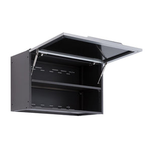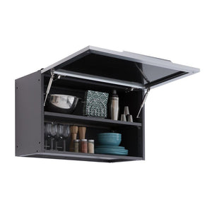 Make use of your vertical storage space with the Outdoor Kitchen Wall Cabinet. This cabinet offers added organizational room above your work area, and features a 1 in. adjustable shelf, for storing your quick grab items and hosting supplies.The Wall Cabinet can be installed securely to wood walls, brick and masonry, using the perforated back panels. The flip-up style door with gas-assist hinges provide easy-access to your stored belongings, while keeping items out of the reach of children.Ideal for storing your cooking oils, spices, and clean-up supplies, the Wall Cabinet will keep your counters decluttered, and your backyard organized. Keep organized and upgrade your backyard living space, with NewAge Products Outdoor Kitchen cabinets in Slate Gray.