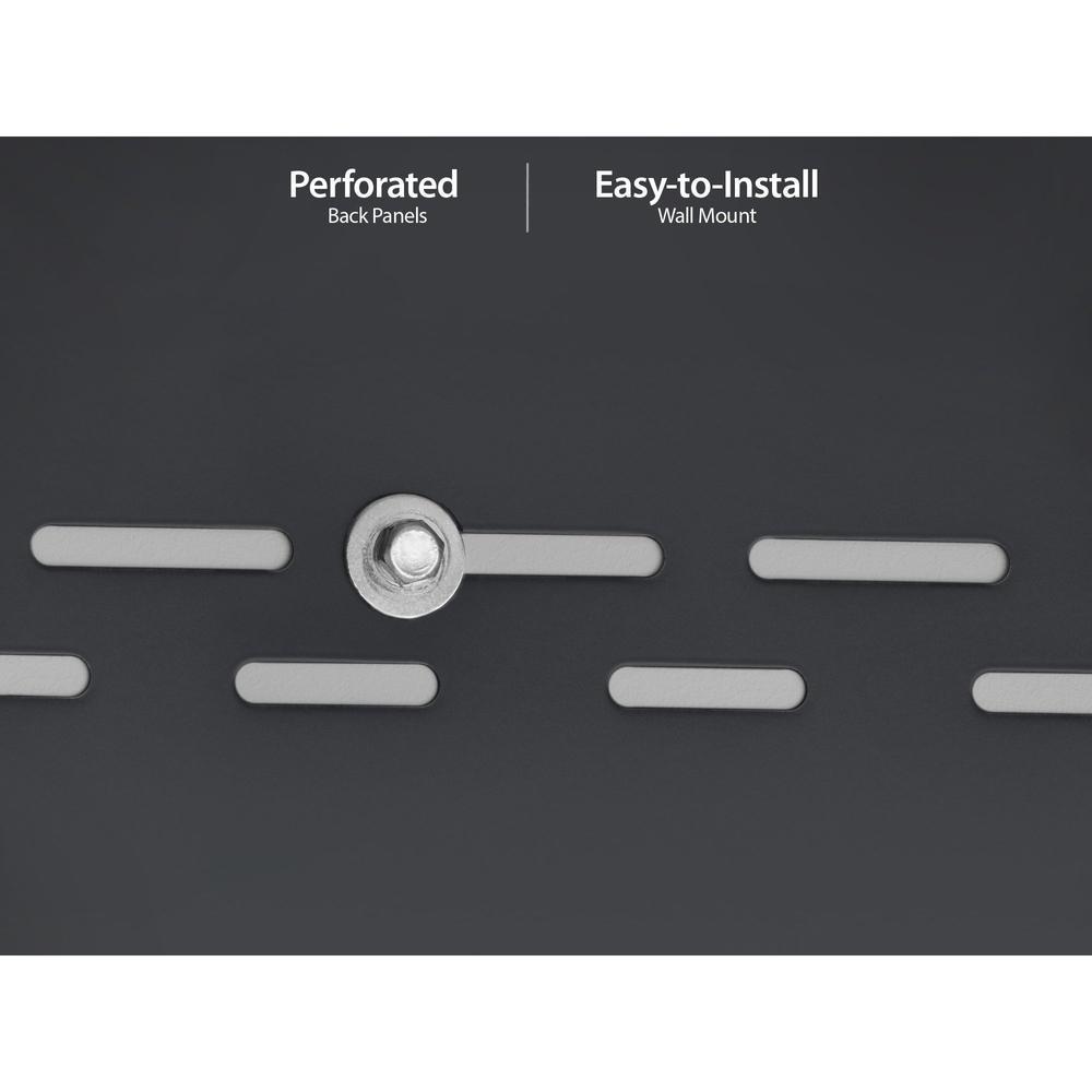 Perforated back panels can be installed securely to wood walls, brick or masonry (brick and masonry hardware not included)