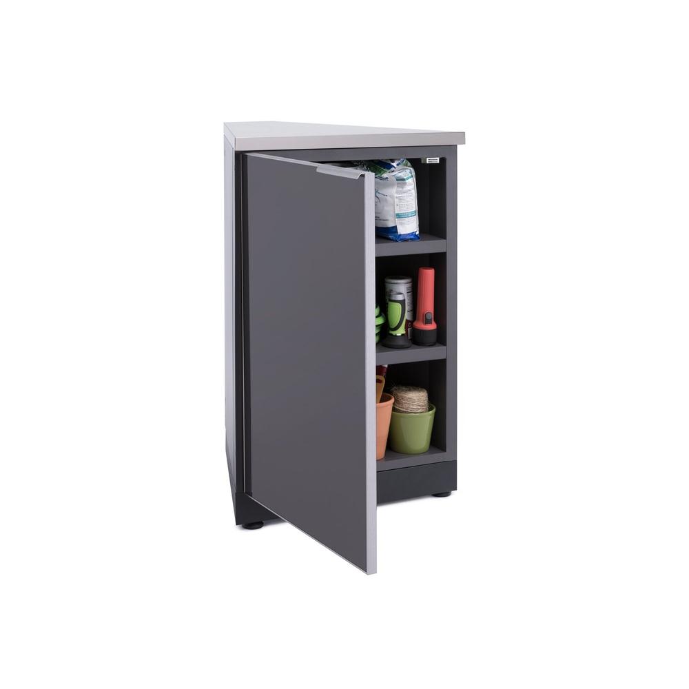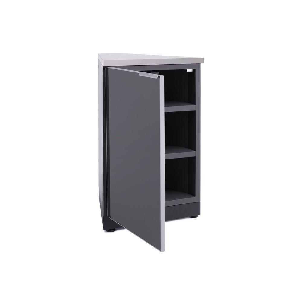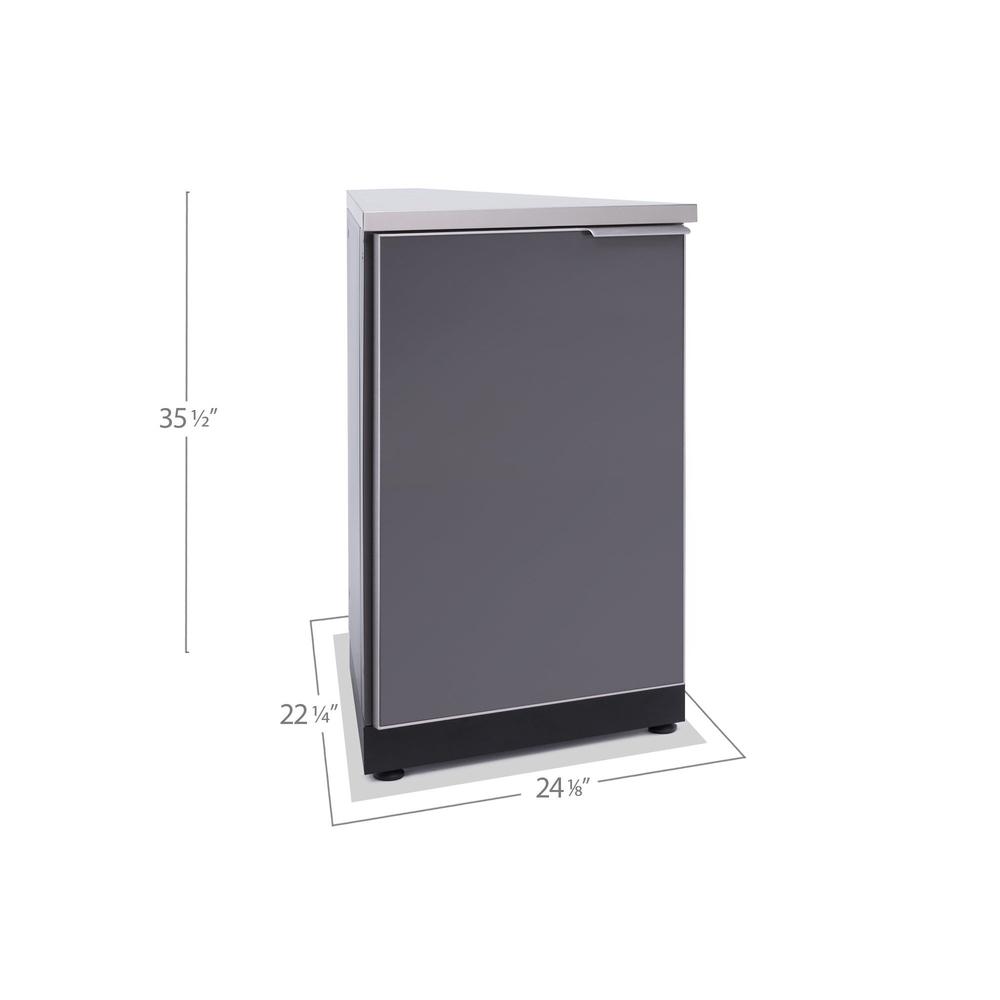 The NewAge Products 45 Corner Cabinet stainless steel classic features 2 fixed shelves, with a clever rear door for easy access to your items. Designed with 18-gauge steel.This cabinet is sold in a set of two and is designed to flank an additional cabinet to create your ideal corner set solution. The stainless steel classic countertops are included in the purchase of this unit, however, you have the flexibility to add your own custom top to this cabinet. Some assembly is required should you choose to install the stainless steel classic countertop which comes with the cabinets. Keep organized and upgrade your backyard living space, with NewAge Products Outdoor Kitchen cabinets in Slate Gray.