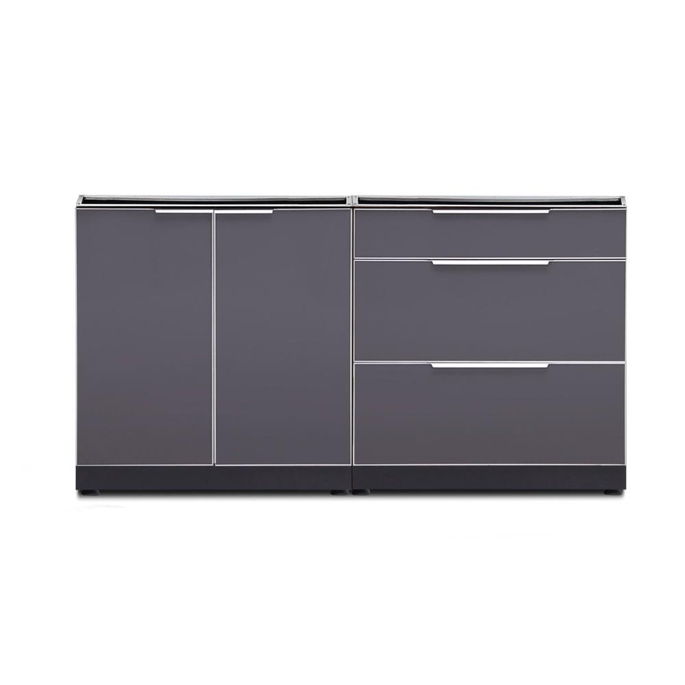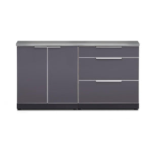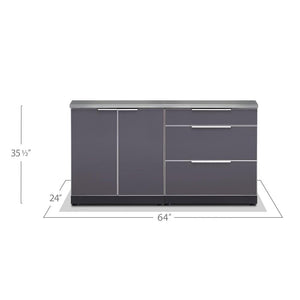 Newage Products Outdoor Kitchen Cabinets Slate Gray Aluminum 3-Piece Set With 3-Drawer Cabinet And 64" Countertop