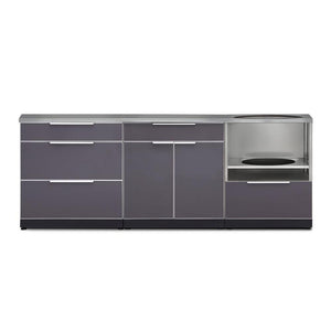 Get grilling, and maximize your backyard storage space, with Outdoor Kitchen cabinets. Constructed from aircraft-grade aluminum, these strong and durable cabinets offer plenty of weather-resistant storage to help you get organized. The 3-Drawer Cabinet has adjustable upper drawer dividers for cutlery and tool organization, with two extra deep drawers, perfect for storing all your hosting essentials. The Bar Cabinet has a height-adjustable wine rack, full-extension beverage chilling drawer and trash drop-in bins. The Kamado Cabinet accommodates multiple sizes of ceramic BBQs, and has an extra-deep drawer to store grilling tools and charcoal. Keep organized and upgrade your backyard living space, with NewAge Products Outdoor Kitchen cabinets in Slate Gray.
