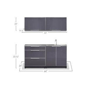 Newage Products Outdoor Kitchen Cabinets Slate Gray Aluminum 5-Piece Set With 3-Drawer Cabinet And 32" Countertop