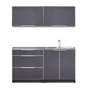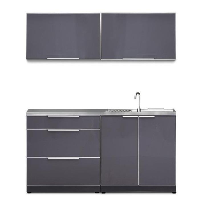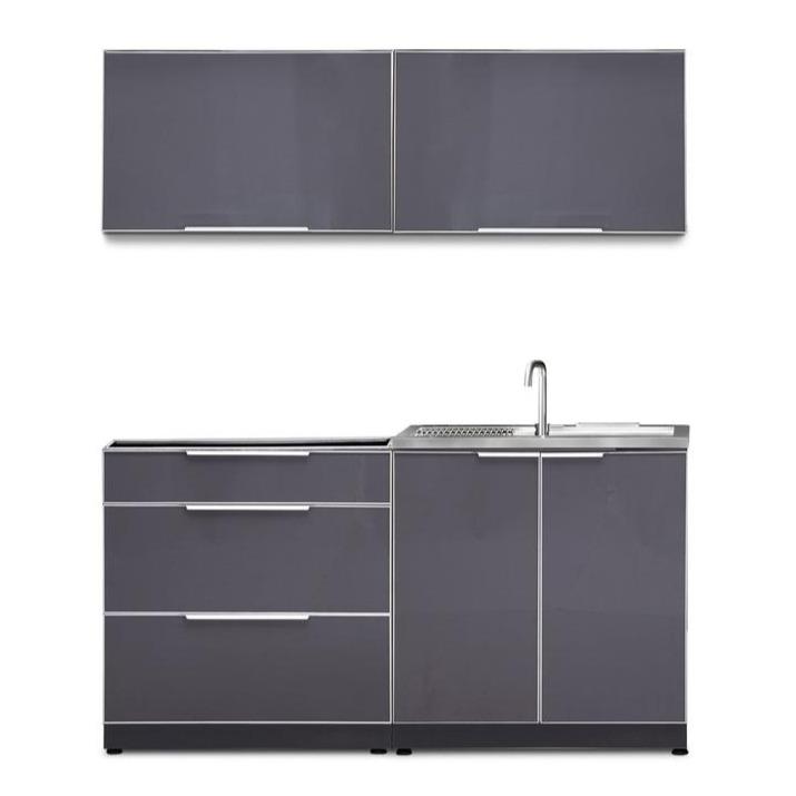 Get grilling, and maximize your backyard storage space, with Outdoor Kitchen cabinets. Constructed from aircraft-grade aluminum, these strong and durable cabinets offer plenty of weather-resistant storage to help you get organized. The Sink Cabinet provides a convenient clean-up station for muddy hands and dirty dishes, with a 7 in. deep stainless steel sink basin, allowing you to spend less time in the kitchen, and more time with your guests. The 3-Drawer Cabinet has adjustable upper drawer dividers for cutlery and tool organization, with two extra deep drawers, perfect for storing all your hosting essentials. The Wall Cabinet can be installed securely to wood walls, brick and masonry, using the perforated back panels. The flip-up style door with gas-assist hinges provide easy-access to your stored belongings, while keeping items out of the reach of children. Keep organized and upgrade your backyard living space, with NewAge Products Outdoor Kitchen cabinets in Slate Gray.