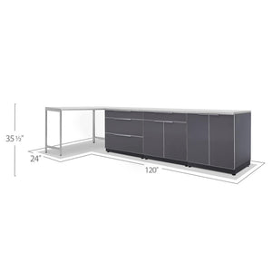Newage Products Outdoor Kitchen Cabinets Slate Gray Aluminum 5-Piece Set With Prep Table