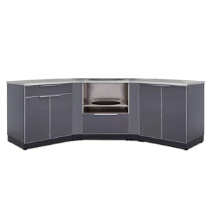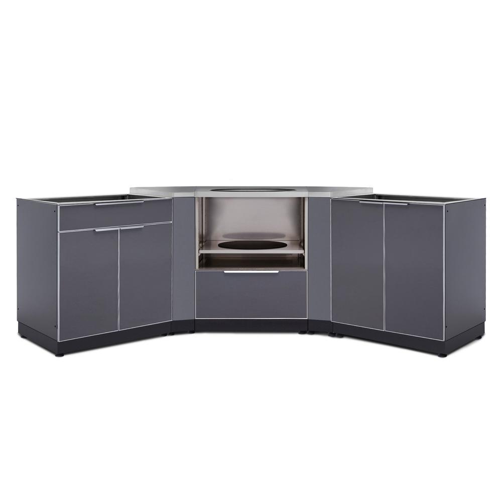Newage Products Outdoor Kitchen Cabinets Slate Gray Aluminum 7-Piece Set With Kamado Cabinet And (2X) 32" Countertops