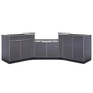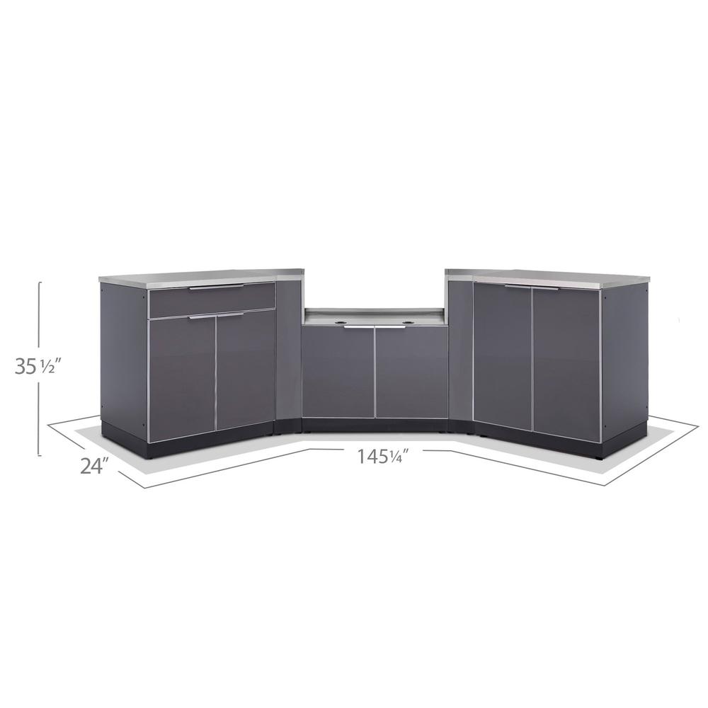 Newage Products Outdoor Kitchen Cabinets Slate Gray Aluminum 7-Piece Set With (X2) 45° Corner Cabinet