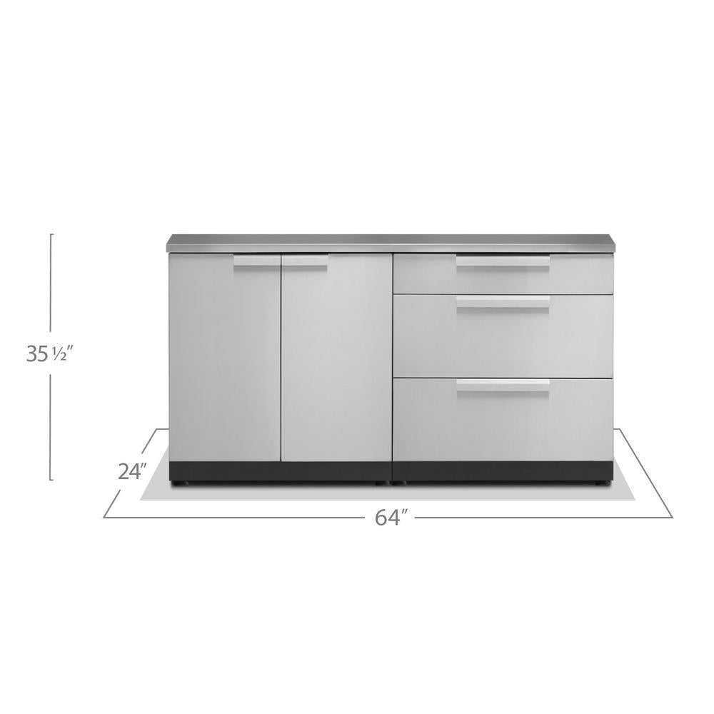 Newage Products Outdoor Kitchen Cabinets Stainless Steel 3-Piece Set With 3-Drawer Cabinet And 64" Countertop