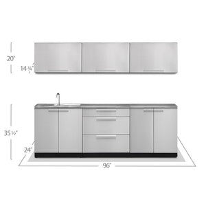 Newage Products Outdoor Kitchen Cabinets Stainless Steel 7-Piece Set With 3-Drawer Cabinet And 64" Countertop