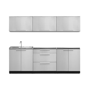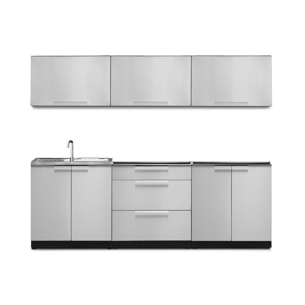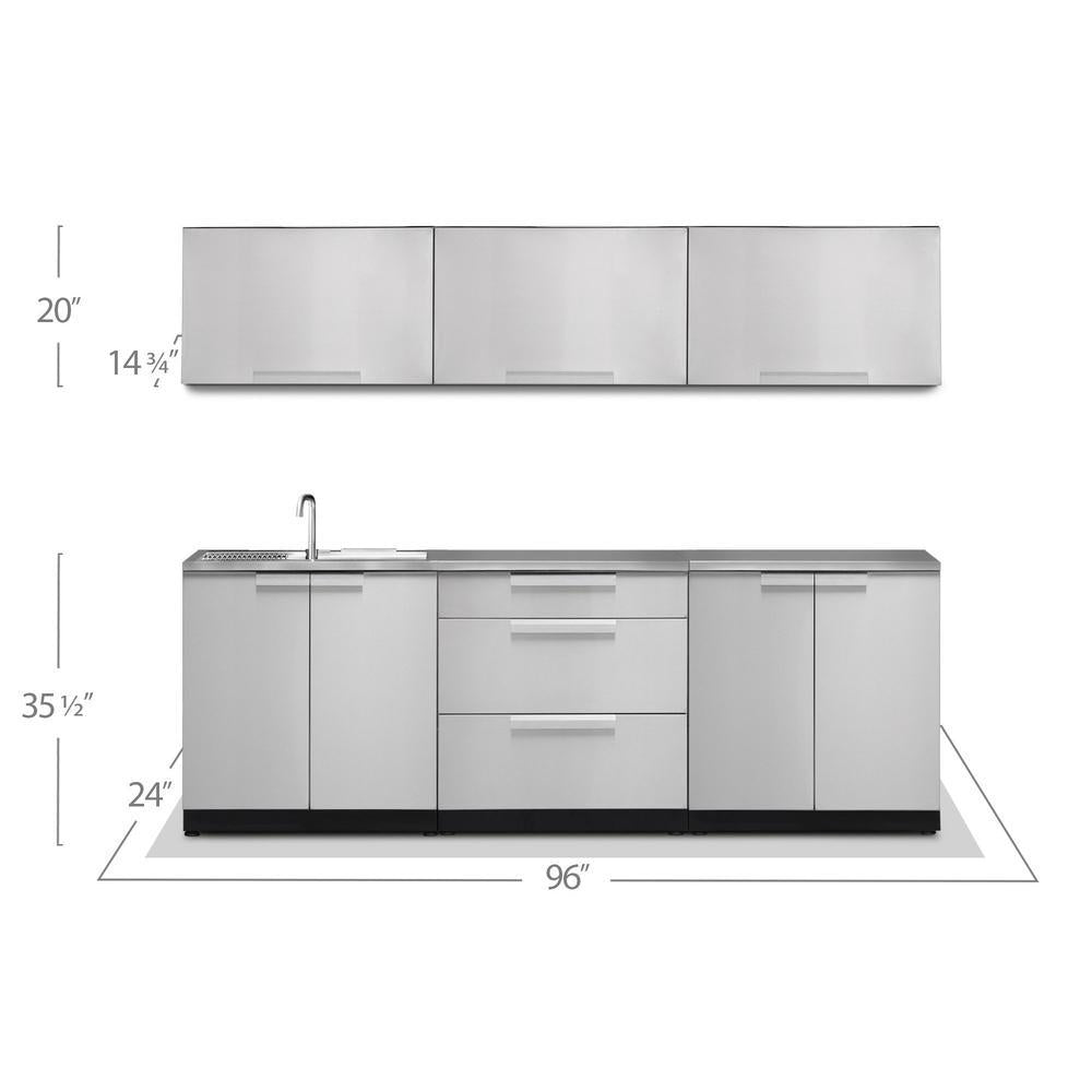 Get grilling, and maximize your backyard storage space, with Outdoor Kitchen cabinets. Constructed from restaurant-grade, 304 stainless steel, with reinforced double-wall doors, these cabinets are weather and corrosion resistant, for all-season durability. Adjustable shelves let you customize your 2-Door Cabinet to store any sized items. The Sink Cabinet provides a convenient clean-up station for muddy hands and dirty dishes, with a 7 in. deep stainless steel sink basin, allowing you to spend less time in the kitchen, and more time with your guests. The 3-Drawer Cabinet has adjustable upper drawer dividers for cutlery and tool organization, with two extra deep drawers, perfect for storing all your hosting essentials. The Wall Cabinet can be installed securely to wood walls, brick and masonry, using the perforated back panels. The flip-up style door with gas-assist hinges provide easy-access to your stored belongings, while keeping items out of the reach of children. The NewAge Products Outdoor Kitchen cabinets in Stainless Steel or Grove provide a clean, professional look that will get your backyard organized.