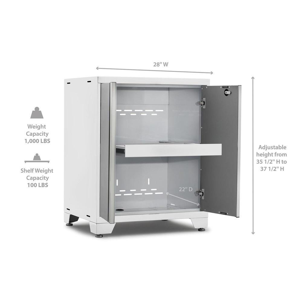 NewAge Products' Pro 3.0 Series base cabinets are spacious, secure and stylish. They arrive ready-assembled from 18-Gauge steel and feature double-walled, lockable, soft-closing doors, an interior pull-out shelf with soft-close drawer slides, height-adjustable feet and a cable management access hole at the base. With a lifetime limited warranty and our money-back guarantee you can buy with total confidence.