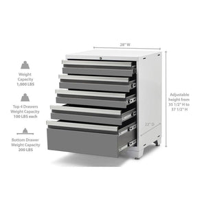 NewAge Products' Pro 3.0 Series tool cabinets give you up to 1,000 lbs of tool storage space to keep a wide range of your tools close at hand. They arrive ready-assembled from 18-Gauge steel and feature five lockable tool drawers with soft-closing mechanisms that let each drawer glide smoothly out to its full extension. The top four drawers each include three adjustable dividers to give you more customization over how you separate your tools. With a lifetime limited warranty and our money-back guarantee you can buy with total confidence.