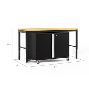 You receive: 1x 42 in . Extra-Wide Base Cabinet, 1x 84 in. Workbench, 1x 84 in. Worktop (Bamboo or Stainless Steel), 1x 4 in. Caster Kit