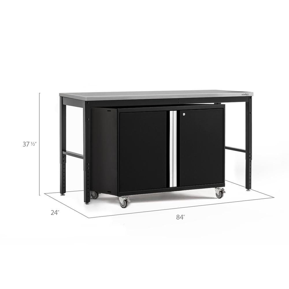 Newage Products Pro 3.0 Series Black 42" Base Cabinet And Workbench With Worktop