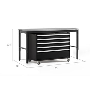 You receive: 1x 42 in. Extra-Wide 5-Drawer Tool Cabinet, 1x 84 in. Workbench, 1x Stainless Steel Worktop, 1x 4 in. Caster Kit