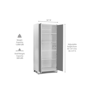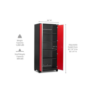 NewAge Products' 36" Pro 3.0 Series Multi-Use Locker gives you 1,000 lbs of storage capacity to boost your garage organization capacity significantly. 24" deep, it arrives ready-assembled from 18-Gauge steel and features double-walled, lockable, soft-closing steel doors, four adjustable steel shelves, a removable closet rod with multi-peg hooks for hanging storage and a cable management hole at the base. With a lifetime limited warranty and our money-back guarantee you can buy with total confidence.