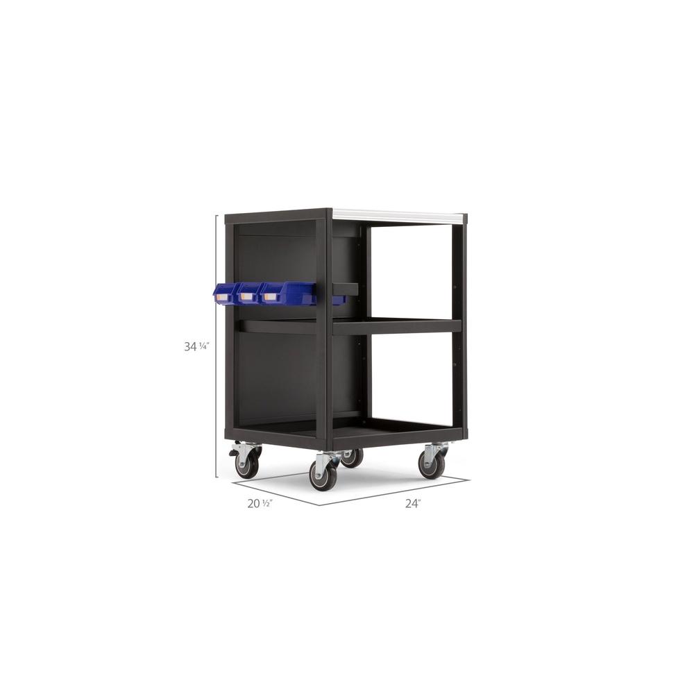 NewAge Products' Pro 3.0 Series steel utility cart is a versatile unit for everyday use. Arriving ready to assemble it includes 1 adjustable interior shelf and a removable tool tray with dividers and 4 parts bins for storing small items and rubber liners to protect your tools. 24" wide and 20.5" deep it stands on lockable casters and provides 500 lbs of weight capacity. With a lifetime limited warranty and our money-back guarantee you can buy with total confidence.