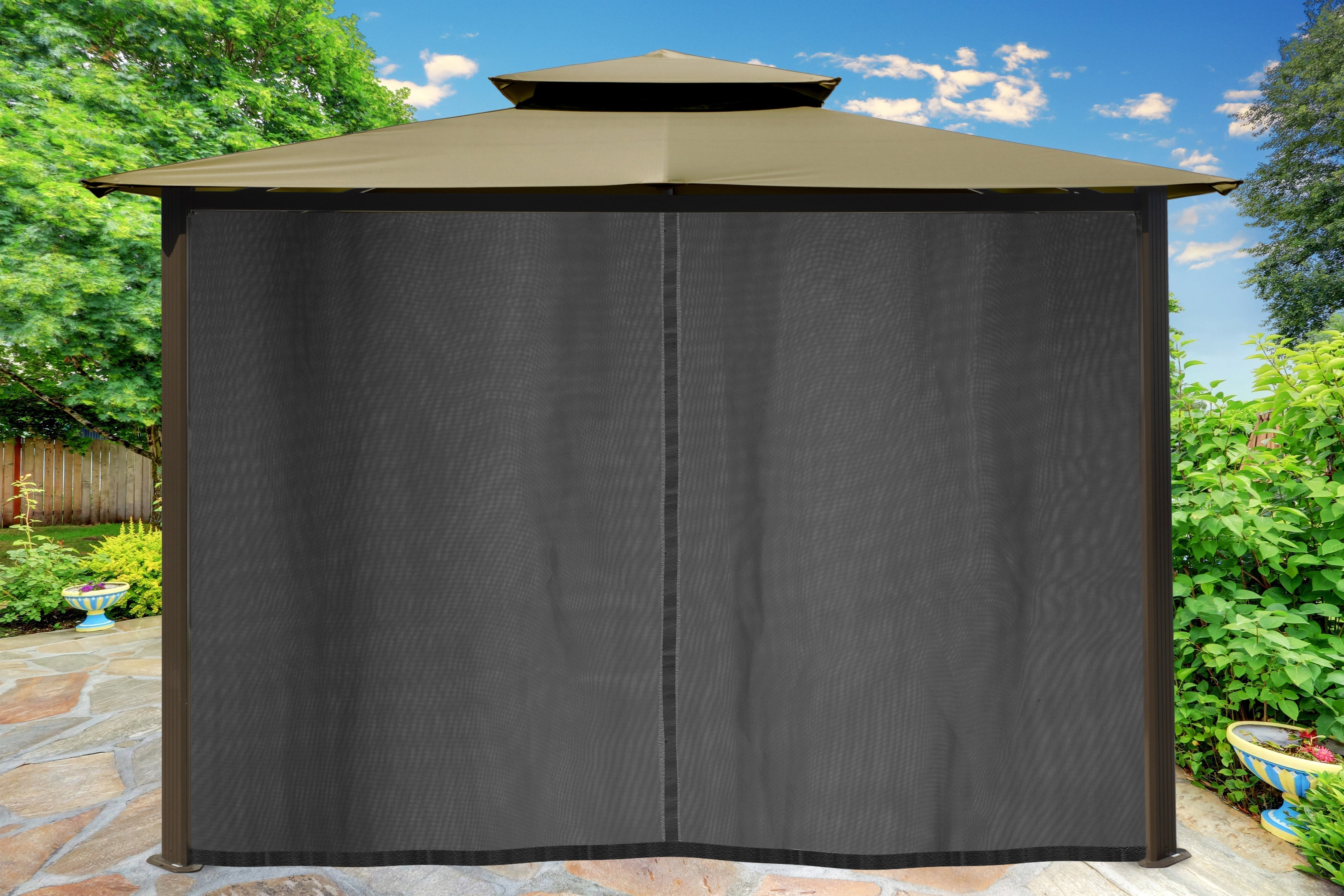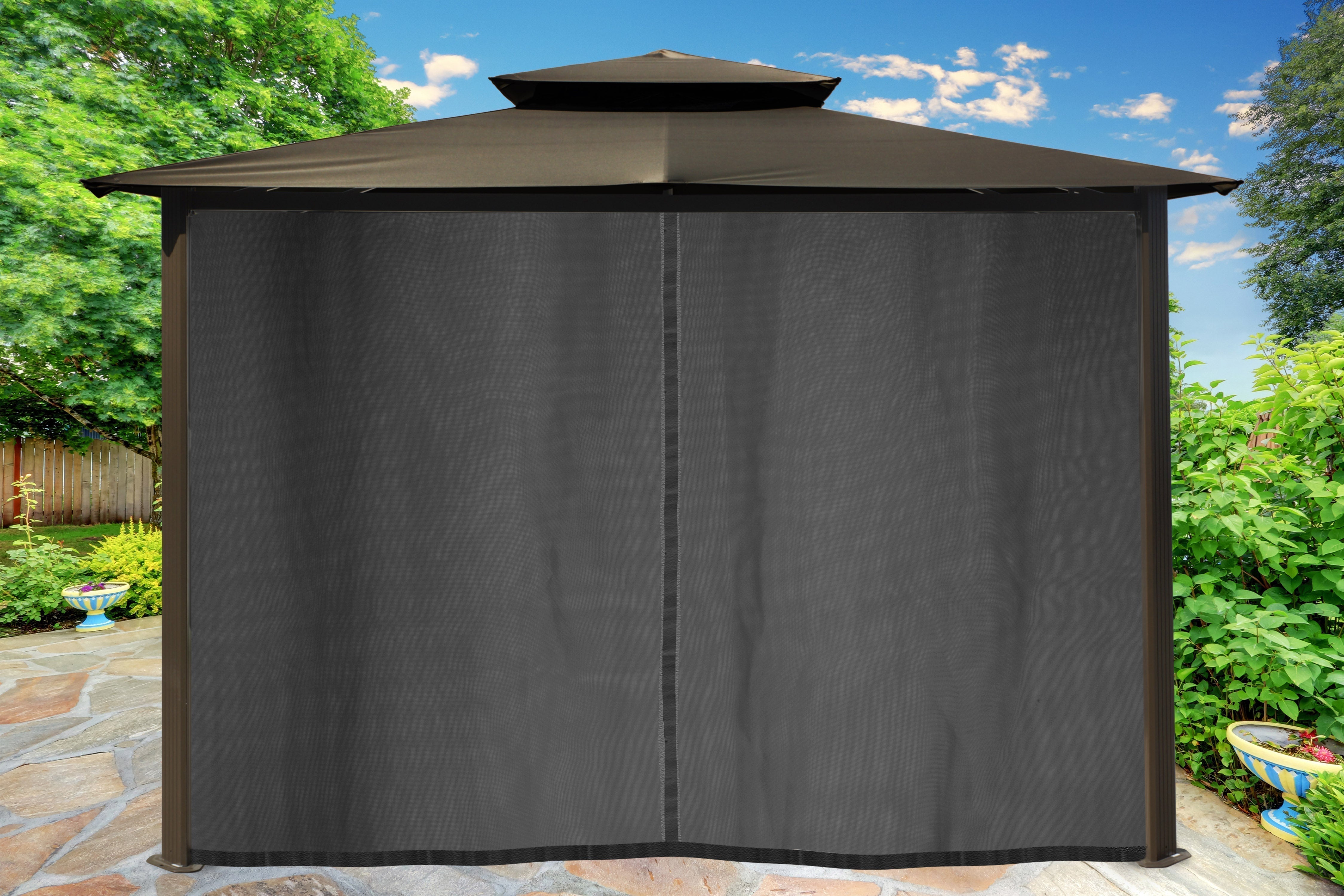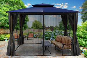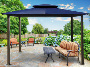 The Barcelona soft-top Gazebo from Paragon Outdoor is an easy proposition with an affordable price tag, effective shade from the sun and easy 2-hour assembly for two people. Choose from 5 color options for roof of Dome-Tex material and place it on grass, a patio, by the pool or on concrete with the included hardware bolts and garden stakes for secure placement. The powder-coated aluminum structure is both robust and attractive, providing years of rust-free usage. Your family and friends will enjoy gathering together under Barcelona's ample shade to share cooling leisurely moments for years to come.