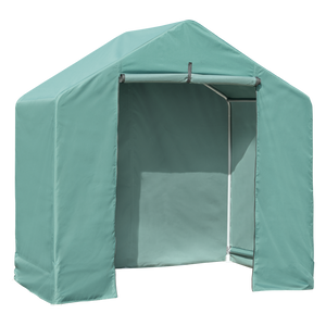 The ShelterLogic Garden Shed is the perfect small storage solution for a patio, deck, or side of a house. The shed can be assembled in less than 30 minutes and offers optimal small space storage. The shed frame is constructed with 1-inch powder-coated carbon steel pipes and has a durable UV-treated 300D polyester cover. It can be used to store garden tools, pool supplies, and anything else you want to keep out of sight.