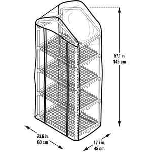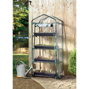 Start seedlings or extend your growing season with the GrowIT 4-Tier Mini Growhouse. This easy-to-assemble, compact greenhouse is constructed with a high-grade steel tubular frame. The clear PVC cover allows a significant amount of light to reach the plants, while reducing the amount of harmful UV light. This means less damage to plants as well as reduced fungus and harmful insects.