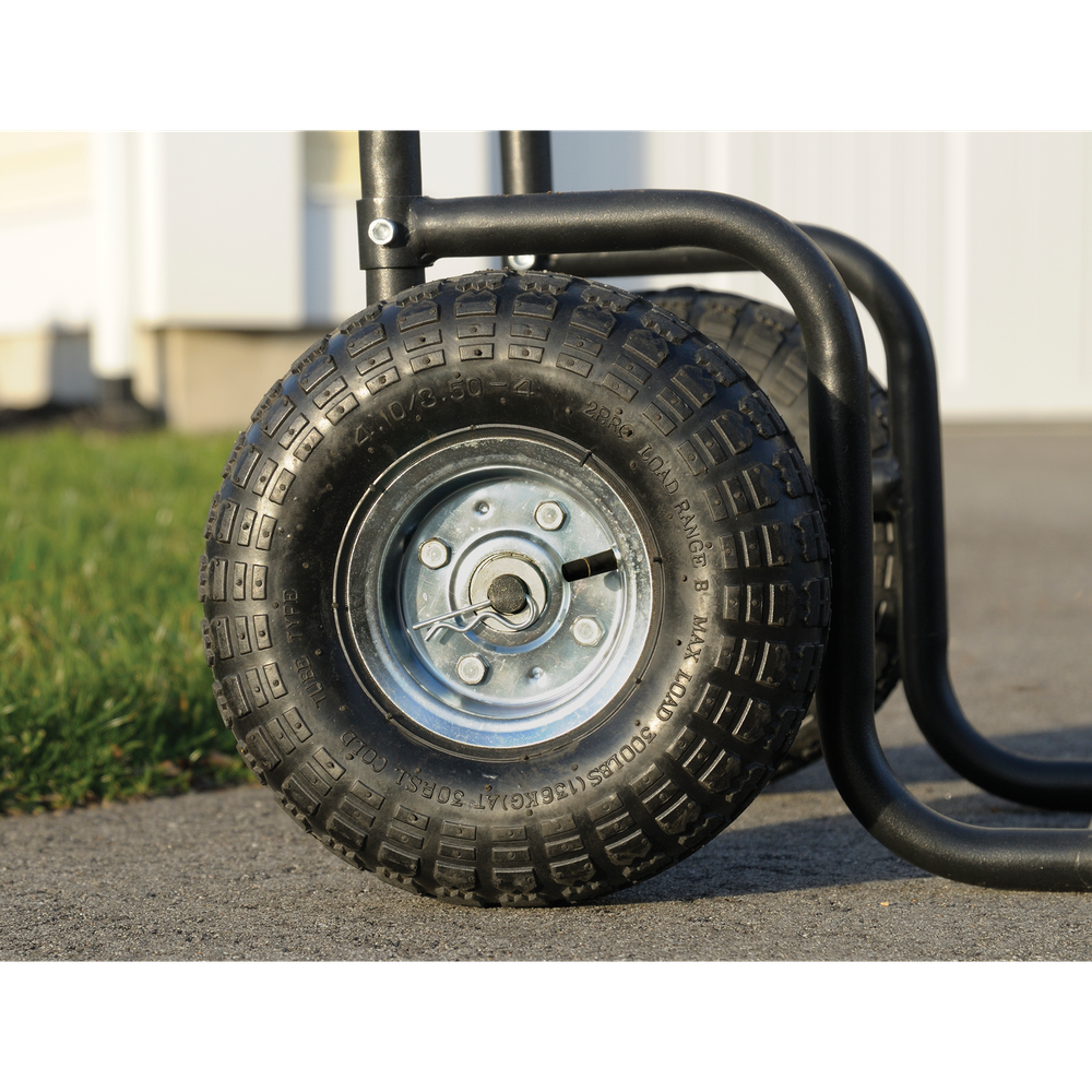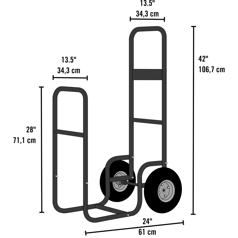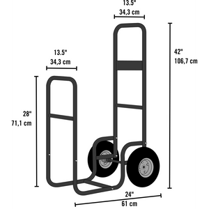 Ready to Roll purpose wood mover, assembles with ease and really stands up to the elements. Super sturdy frame design and all terrain tires make this mover a must have for hauling wood and other large loads.