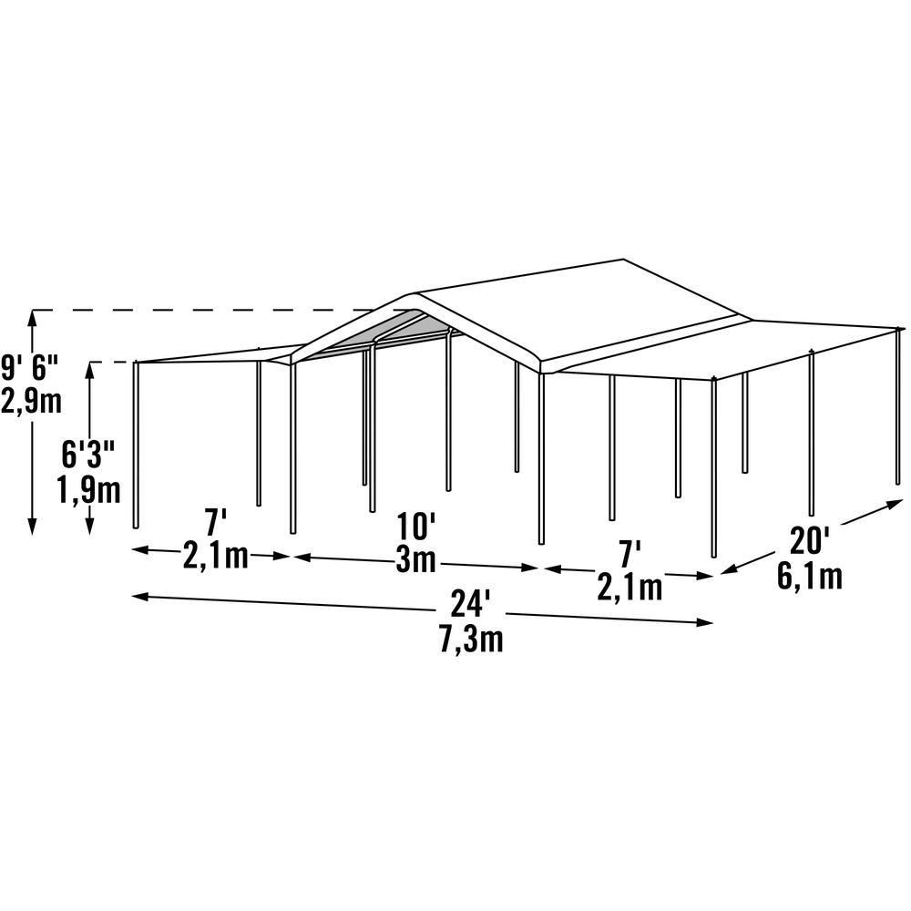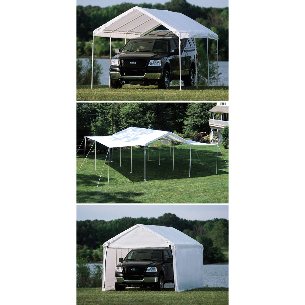 The ShelterLogic MaxAP 3-in-1 Canopy Pack is great for any seasonal shade occasion including backyard, events, camping, commercial job sites, picnic areas, and much more. Extension Kit extends shade coverage from an 10 ft. x 20 ft. canopy to a 24 ft. x 20 ft. event tent. Sets up in less than two hours with only two people. Comes with a complete enclosure kit, panels, and extension poles.