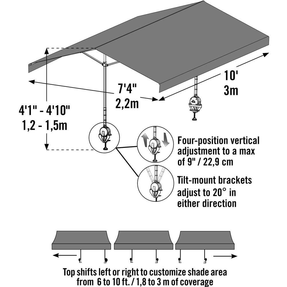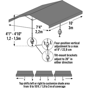 The ShelterLogic patent pending Quick Clamp Canopy Tilt Mount is the perfect shade solution for your next picnic, camping, or outdoor event. The adjustable tilt-mount bracket clamps easily to many surfaces and fits most tables up to 10 ft. long. The cover shifts left to right, adjusts vertically up and down, and tilts to 20 degrees in either direction. It is the ideal outdoor, customizable portable shade solution.