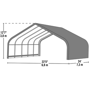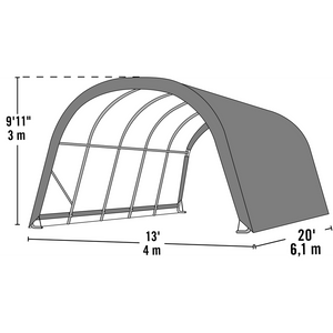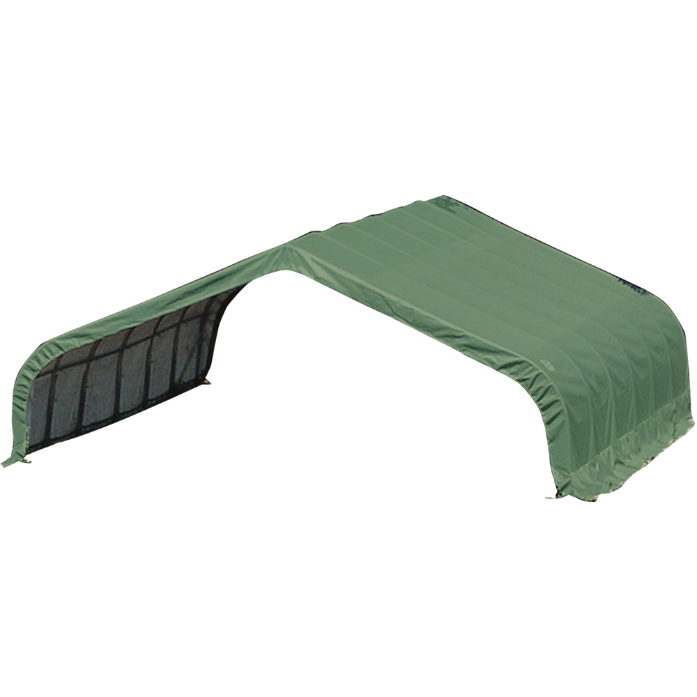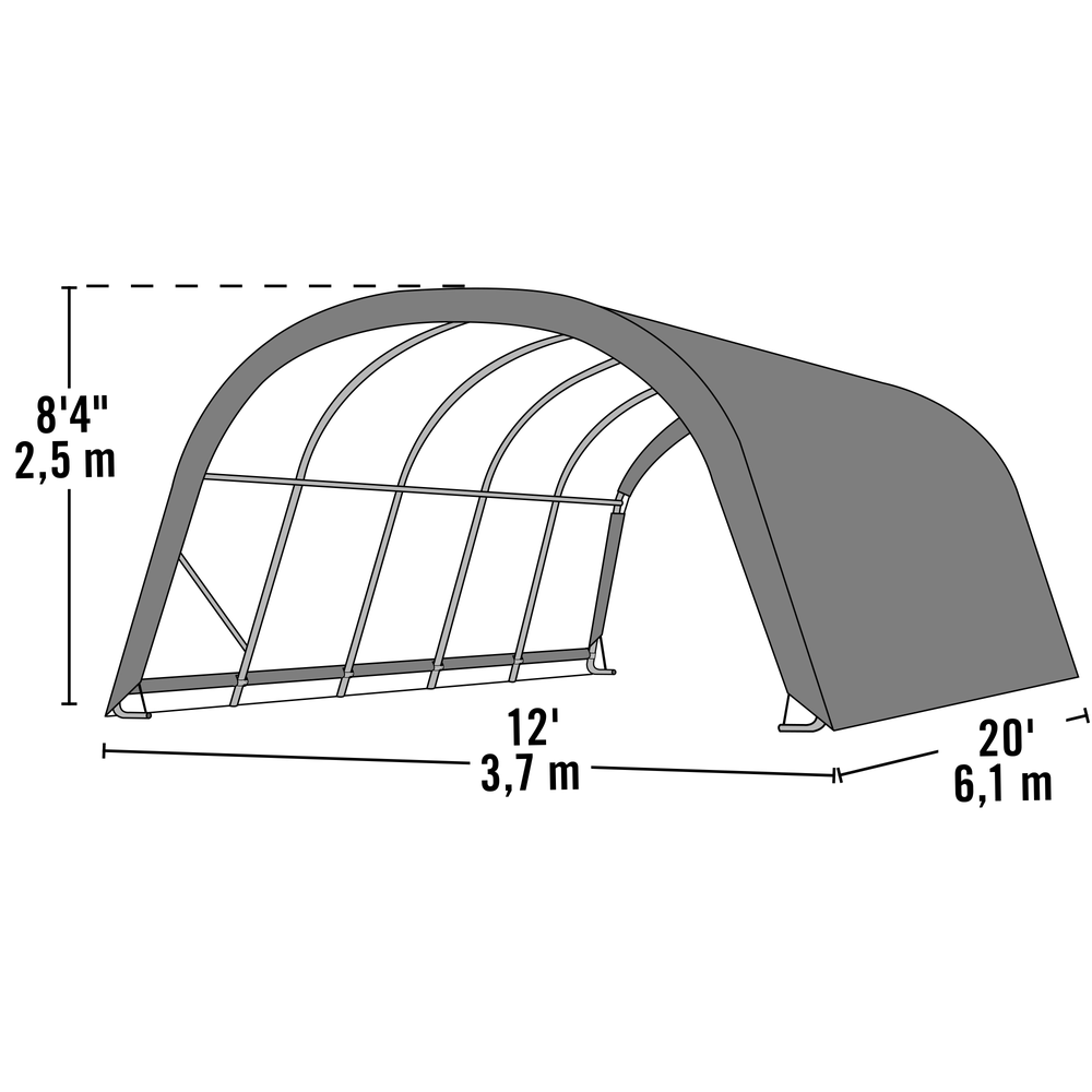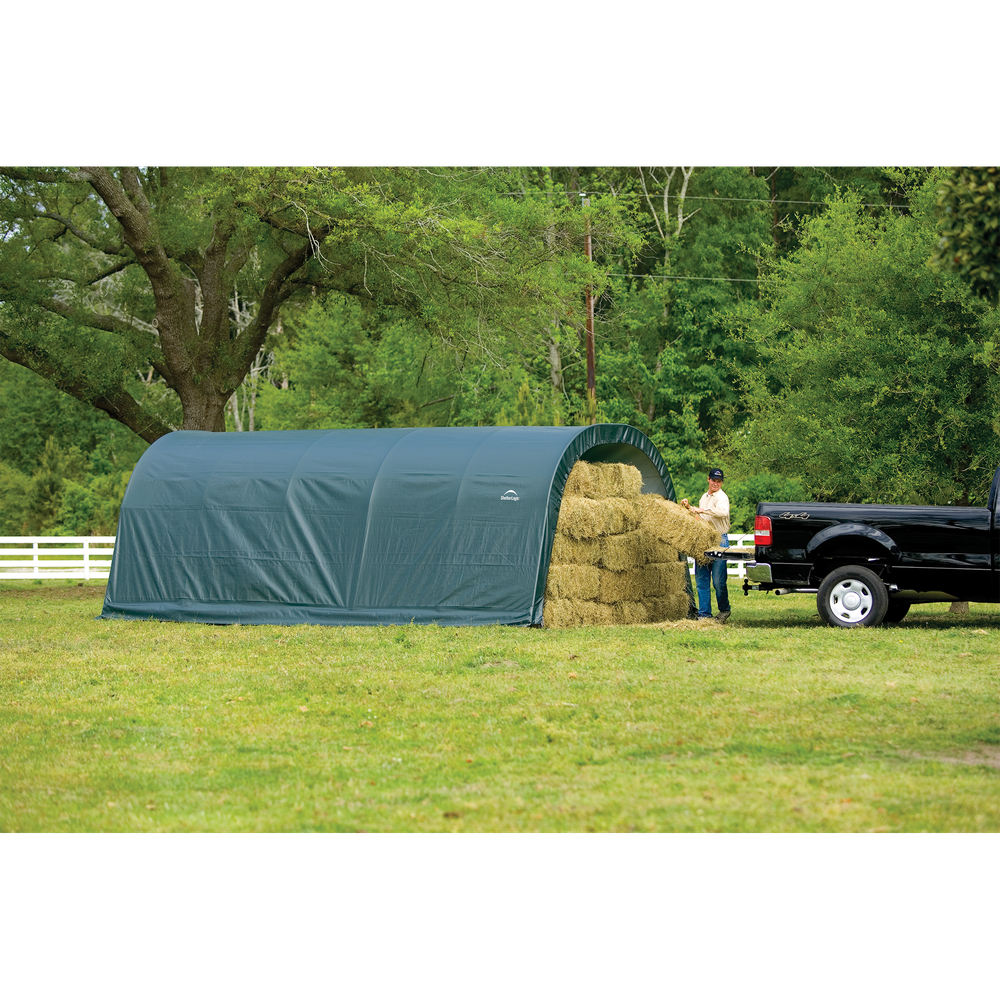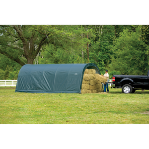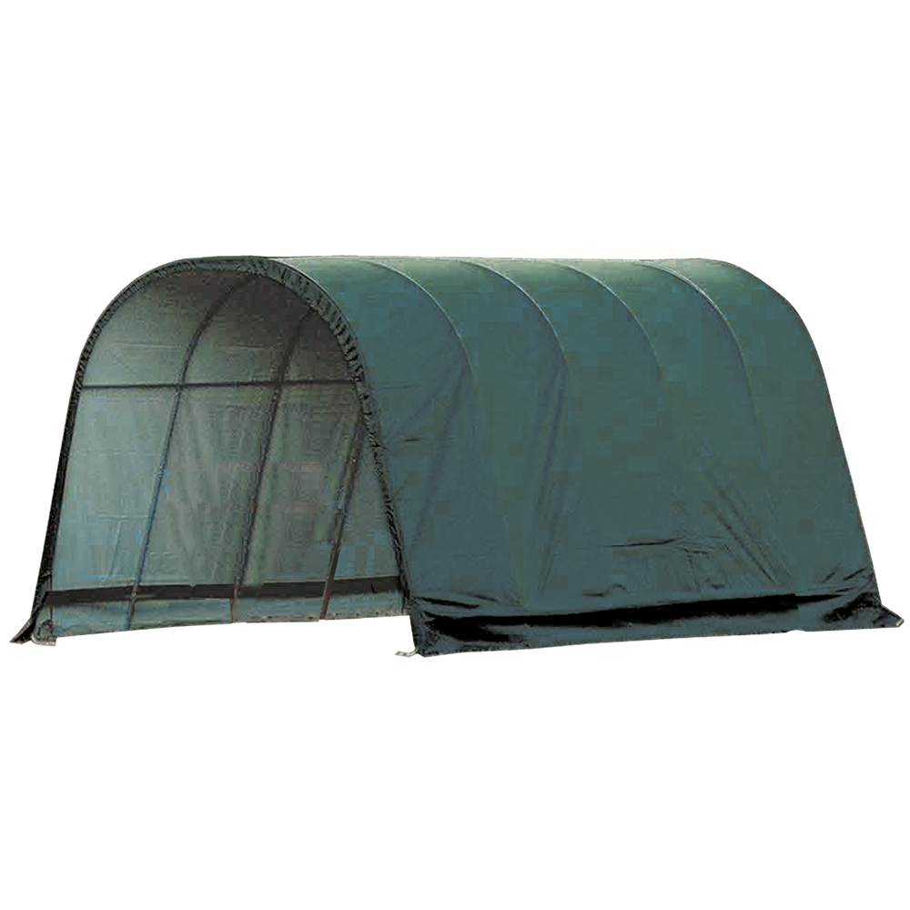 Ideal for sheltering horses, livestock, hay and field equipment, the ShelterLogic 12 x 20 x 8 ft. Equine Run-In-Shed has a spacious 240 sq. ft. coverage area that provides room for lots of your outdoor items. The high-grade 1-5/8 in. steel frame features a premium powder-coated finish that resists chipping, peeling, rust and corrosion. The durable 3-layer polyethylene cover is UV-treated inside and out to help withstand the elements.