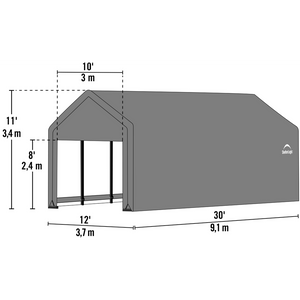 Two (2) zipper doors for drive-through access and 8 ft. door opening height for fitting large vehicles through the doors. Roll-up door kits included.